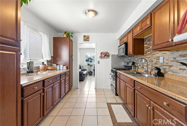 This charming 3-bedroom, 1.5-bath home is located in a quiet, established neighborhood. Enjoy a beautifully landscaped front yard with a fenced entry and a long concrete driveway — perfect for extra parking or RV potential. Inside, the home features tile flooring throughout, dual-pane windows, and a spacious indoor laundry/bonus room. The kitchen offers plenty of cabinet space, cherry oak finishes, and a modern backsplash. Step into a large backyard with a covered patio and mature trees — perfect for gatherings, kids, or your dream garden. Comfortable, clean, and move-in ready. Come see it for yourself!