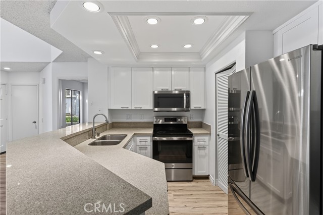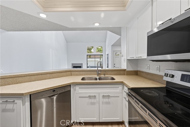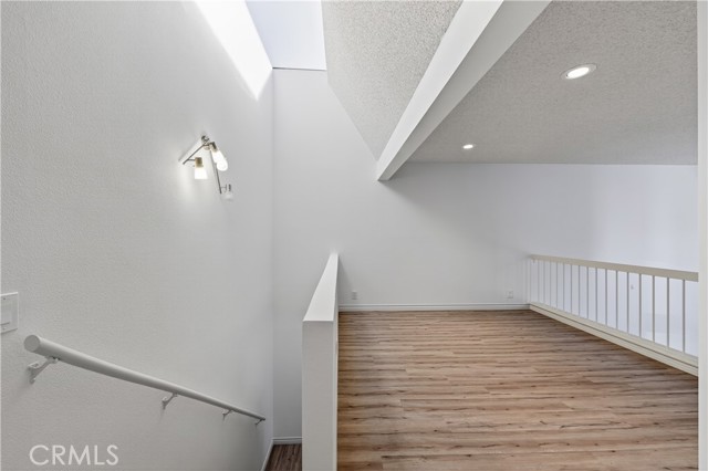 Welcome to this beautifully upgraded end-unit townhome in the highly desirable Woodbridge community of Irvine! Offering 2 bedrooms, 2 bathrooms, and an open 1,171 sq ft floor plan, this light and bright home features vaulted ceilings, skylights, and abundant natural light throughout. The modern kitchen is fully updated with quartz countertops, stainless steel appliances, and custom cabinets that open to a spacious dining and living area with a cozy fireplace. One bedroom and a full bath are conveniently located on the main level, while the primary suite upstairs includes an en-suite bath and a large closet. A versatile loft area provides the perfect space for a home office or reading nook. Additional highlights include laminate flooring (no carpet), recessed lighting, plantation shutters, inside laundry, and a private patio ideal for relaxing or entertaining. The home also includes a detached one-car garage plus additional guest parking nearby. Enjoy resort-style living with access to Woodbridge’s incredible amenities—two scenic lakes, beach lagoons, multiple pools and spas, tennis and pickleball courts, parks, playgrounds, and walking trails. Centrally located near award-winning Irvine schools, shopping centers, dining, and major freeways, this home combines comfort, style, and convenience.