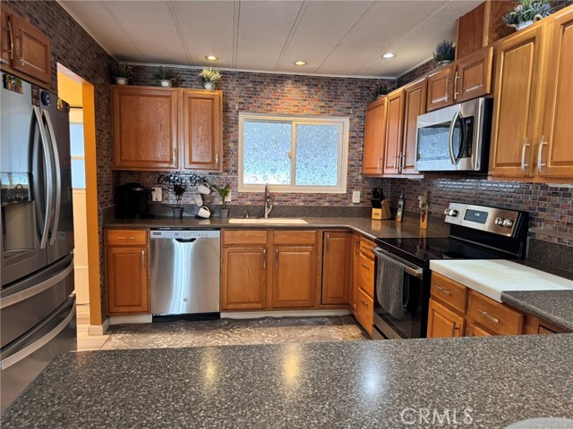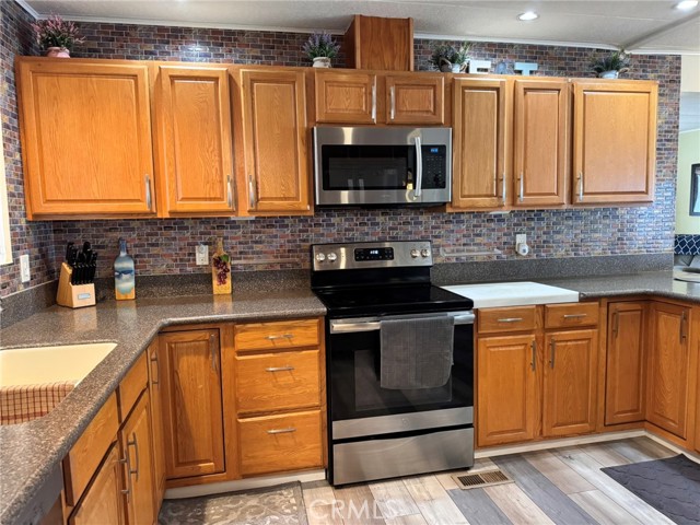 Charming 55+ serene Home in Highland Palms Senior Estates & Country Club! This beautifully maintained 2-bedroom, 2-bath home offers comfort, style, and convenience. Enjoy upgrades throughout, including dual-pane windows, ceiling fans, nice interior paint, and a stunning tiled shower in the primary bath. The remodeled kitchen adds a modern touch, and the indoor laundry room provides everyday ease. The spacious carport is enclosed and offers automatic garage door for added functionality. Backyard has been landscaped with grass, flowers, and plants. Residents of Highland Palms enjoy resort-style amenities featuring a 9-hole golf course, clubhouse with pool and spa, RV parking with dumping and air hook ups, banquet room, BBQ area, recreational room, game room etc, and weekly activities. BEST OF ALL, THERE IS NO RENT SPACE—YOU OWE THE LAND!