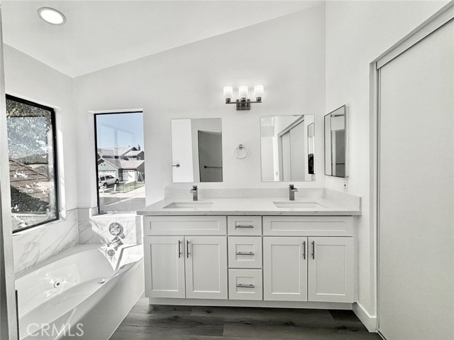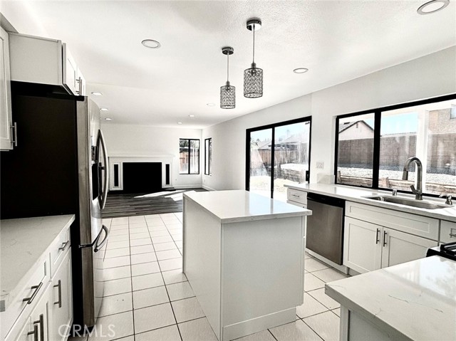 This is A must-see house with a spacious layout. Upon entering, you will be welcomed by high ceilings that give the home an open and airy feel. The layout includes a formal dining area, a large living room, and an open kitchen with a cozy fireplace. The downstairs features a versatile den that can be used as a home office, as well as a bedroom with an adjacent bathroom. This makes it perfect for guests or in-law visits. The primary suite is upstairs and includes dual sinks, a soaking tub, and a walk-in closet. While public records show a total of three bedrooms, this property has been modified. The owner has added three additional bedrooms, making it ideal for a large family. An attached 2-car garage provides plenty of storage and convenient access. The home is in an established Victorville neighborhood with easy access to amenities and major roads