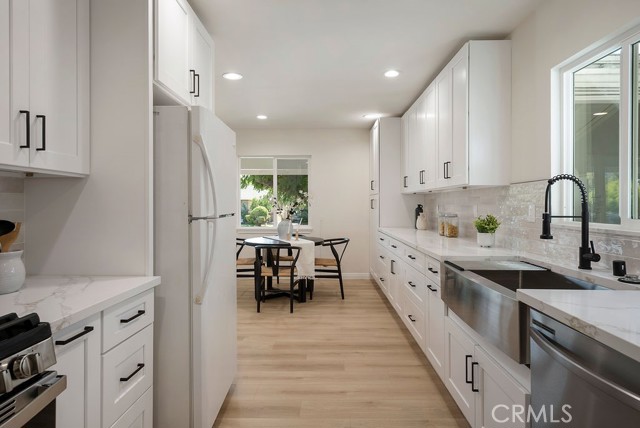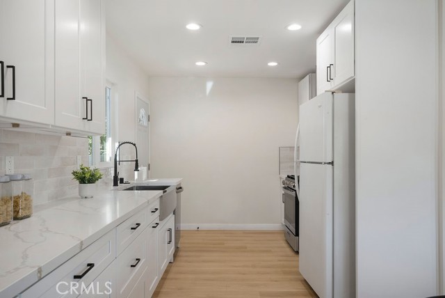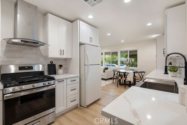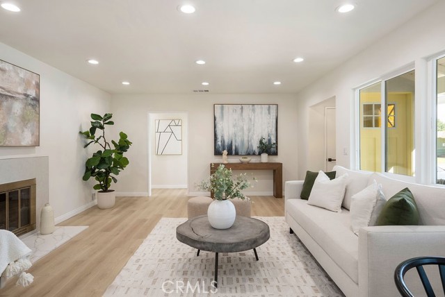 Meticulously renovated, large, corner lot home for sale located in the heart of West Covina. As you enter this beauty of a home you are greeted with a bright, open layout, spacious living room that flows right into the dining room and kitchen. The well thought out kitchen features brand new gas stove, range hood, quartz countertops, dishwasher, garbage disposal, oversized stainless steel farmhouse sink and tons of cabinetry for all your cooking and storage needs. To the right of the living room are 2 sizable bedrooms that share a full bathroom in the hallway. Bathroom includes a 48" floating vanity, high tech motion censored toilet, spa like shower tile and modern rain shower head and handheld shower head for your convenience. The generously sized primary bedroom boasts an aesthetic brick fireplace, walk in closet and a bonus space for a potential lounge area, office or even a baby crib for a growing family. The large primary bathroom includes 60" dual vanity, same spa like features, high tech toilet and an additional linen storage shelving. Some major updates include brand new HVAC, tankless water heater and also updated plumbing. Moving on to the exterior of the home we have the oversized lot with build potential, freshly installed sod for the best curb appeal and brand new fencing for privacy. The enclosed backyard has a 2 car garage, ample space to park countless cars on the driveway, even some space for an extra storage shed or a garden if you have a green thumb. Location is convenient to the 10 and 605 freeways, Eastland Center, Target, Ikea, grocery stores, retail shopping, Cortez Park, West Covina Mall, South Hills Country Club and more.
