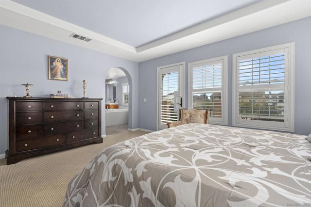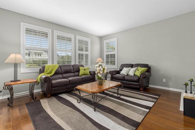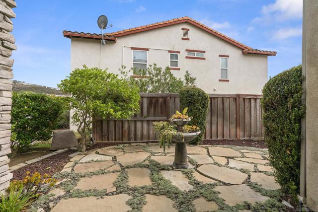 Meticulously maintained home in desirable Luminara of San Elijo Hills. Gorgeous curbside appeal with handsome stone finishes and lush mature landscaping. Front pathway leads to shaded courtyard with majestic trees and garden. The backyard is adorned with custom pavers and hardscape, a built-in fireplace, and a low maintenance yard with plenty of space for outdoor seating. Home is beaming with natural light, featuring arched doorways, wood floors, limestone flooring in kitchen and primary en-suite, granite counters & backsplash, staineless steel appliances, downstairs powder room and modern shutters throughout. Spacious loft upstairs can serve as an optional 4th bedroom, office, or den. Soak in the gorgeous hillside views from the primary suite balcony. Spacious en-suite offers double sinks, large soaking tub, separate shower, walk-in closet and lots of storage. All bedrooms and laundry located upstairs. Built-in refrigerator, washer and dryer are included with the sale. The San Elijo Hills community is sought after for its top-rated schools, quaint town center that includes a magnificent public park equipped with a stage and seating for community events, rows of shops and restaurants, and is just minutes to pristine San Diego beaches. BE SURE TO VIEW THE VIDEO TOUR TO CAPTURE THE BEAUTY OF THIS HOME!