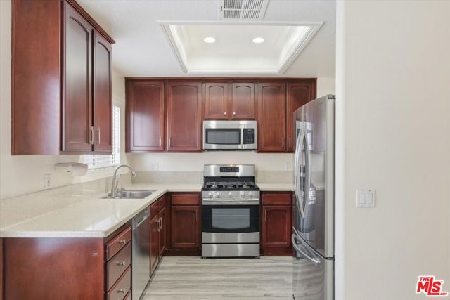 Welcome to 15116 Ocaso Ave., a beautifully updated townhome in the sought-after gated community of La Mirada Town Center, just minutes from Orange County's Koreatown. This spacious 2-bed, 3-bath home offers 1,219 sq. ft. of living space, plus a custom-built bonus room (approx. 110 sq. ft.) added in 2020 perfect as a home office. Enjoy the convenience of a private, attached 2-car garage with direct access into the home through the bonus room, offering both privacy and functionality. The open-concept main floor features high ceilings, a modern kitchen with stainless steel appliances, recessed LED lighting, and a water filtration system. Enjoy both a cozy breakfast nook and a separate dining area, with a laundry closet conveniently tucked away. Upstairs, both bedrooms offer private en-suite bathrooms, ideal for families, roommates, or rental flexibility. Whether you're a first-time buyer, investor, or future landlord, this home combines style, location, and value. Photos have been virtually staged. Don't miss one of the best opportunities in O.C., schedule your tour today!