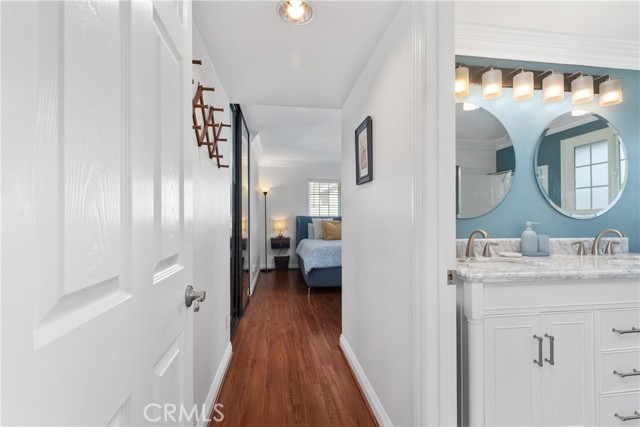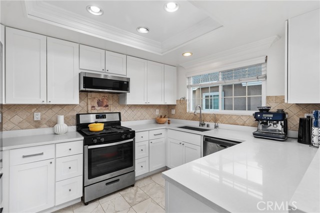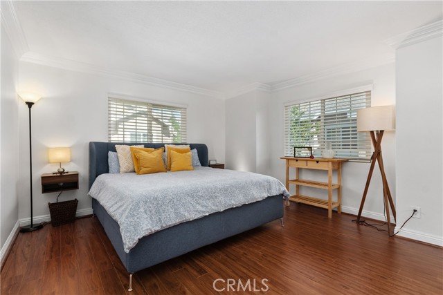 Welcome to 53 Woodleaf, an inviting upper-level home located in central Woodbridge. Perfectly situated across from Windjammer Park and the pool, this residence offers a sought-after Woodbridge location with open greenbelt views and abundant sunlight. Step inside to discover a bright and welcoming interior featuring a spacious living area with vaulted ceilings, crown molding, rich wood-style flooring, and expansive dual-pane windows that frame serene park views. The open layout flows seamlessly into the dining area. The modern kitchen has been beautifully remodeled with white shaker cabinets, quartz countertops, stainless-steel appliances, recessed lighting, and smart pull-out storage. The primary suite, featuring two spacious closets and an upgraded en-suite bathroom with dual vanities, is located along its own hallway. A second hallway leads to two secondary bedrooms, both bright and beautifully maintained. A hallway laundry closet adds everyday convenience to this well-designed layout. Additional upgrades include a Google Nest system for comfort and efficiency and a newly updated roof. Residents of Woodbridge Village enjoy exceptional amenities, including two lakes with docks, two beach lagoons, 22 pools, 16 spas, 23 tennis courts, 4 pickleball courts, and 13 waders, along with parks, playgrounds, sports courts, and scenic walking trails — all part of the Woodbridge Village Association. Close to top-rated Irvine schools, shopping, and dining, this home offers comfort, convenience, and a welcoming community environment.