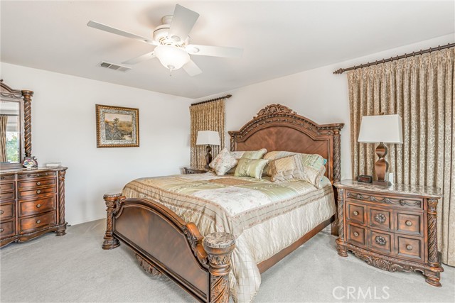 This two-story home is located on one of the largest lots along the golf course in the Tournament Hills gated community. If you like SPACE and VIEWS, this is the home for you!! The first thing visitors see upon entering the home, is a beautiful custom tiled medallion at the front entry. High ceilings and neutral-colored flooring and walls come together to create an impressive view of the formal living room (with a fireplace) and staircase with peekaboo views to the family room and massive backyard. An office is located to the right of the main entrance and has a custom-built bookcase, spanning an entire wall. The family room and kitchen are open concept and have a wall of windows, showcasing the spectacular backyard and endless views. A separate formal dining room, guest bedroom with sliding doors to the backyard and a 3/4 bathroom are also located downstairs. The kitchen has granite countertops, double ovens, a built-in gas cooktop, microwave, dishwasher AND an over-sized kitchen island to accommodate counter seating and meal prep. There is also dedicated space for a breakfast nook with sliding glass doors for backyard access. Upstairs are the primary bedroom and two additional bedrooms and a LARGE loft, currently being used as a game area with electronics, a pool and poker table. The numerous windows from the loft offer spectacular views of the local San Bernardino mountains. The primary bedroom has an ensuite bathroom and spacious walk-in closet but the BEST part of this bedroom is the balcony and the VIEWS one gets of the backyard, golf course and hills off San Timoteo Canyon. The backyard is massive and an entertainer's delight with a patio cover that extends the entire length of the house, an outside BBQ with sink, gas burner, fridge and bar seating, a pool, large grassy area and a viewing deck at the far end of the yard. This home also has a 2-car garage and a single car garage and a large storage shed on the side yard. This gated community features beautiful green spaces, walking paths, the lake, gazebo and security presence. Tournament Hills Elementary is walking distance and other amenities in close proximity include shopping, restaurants, parks and close freeway access.