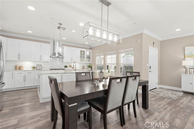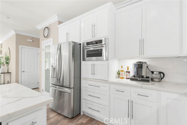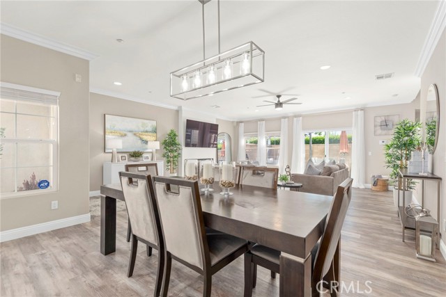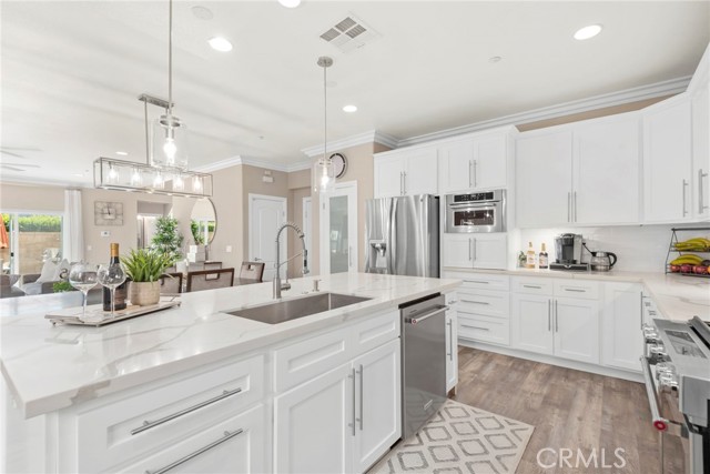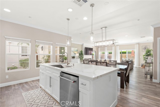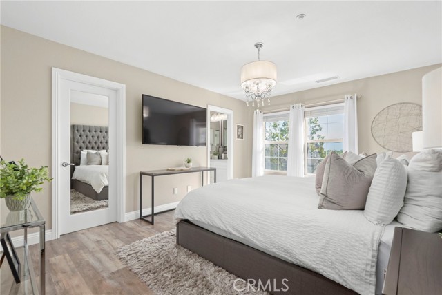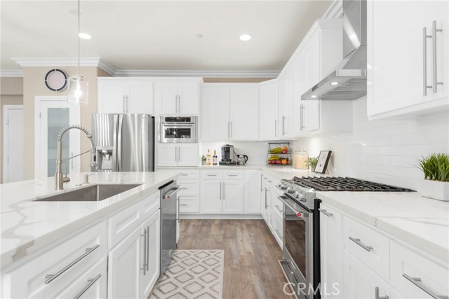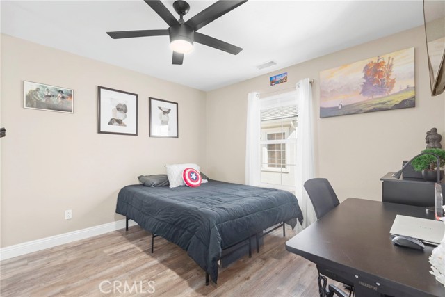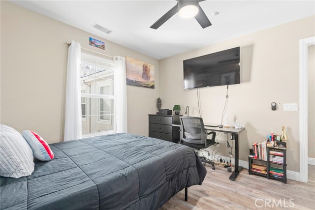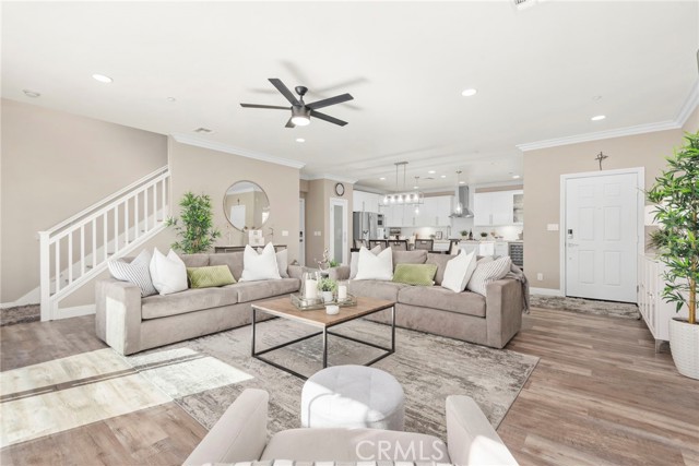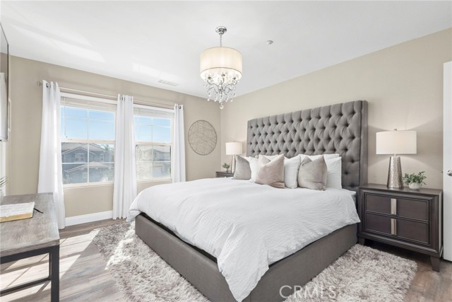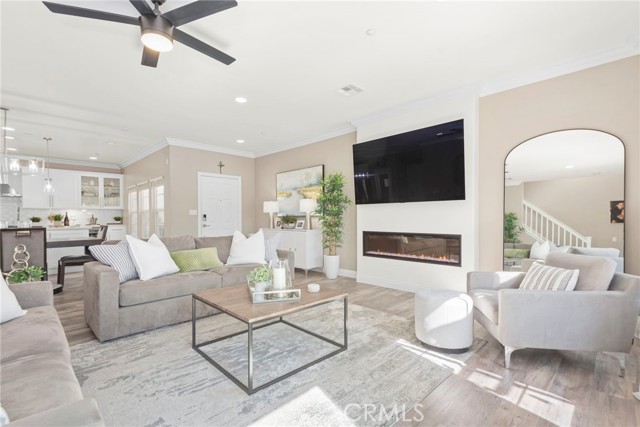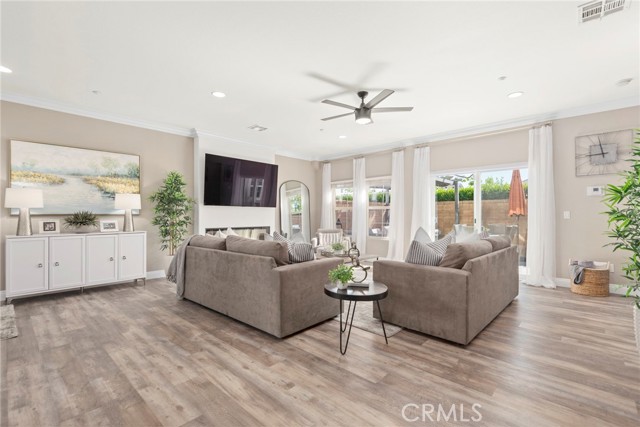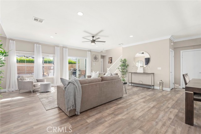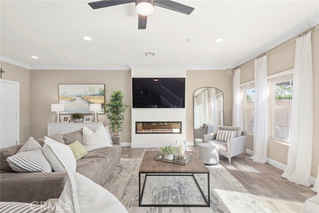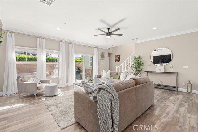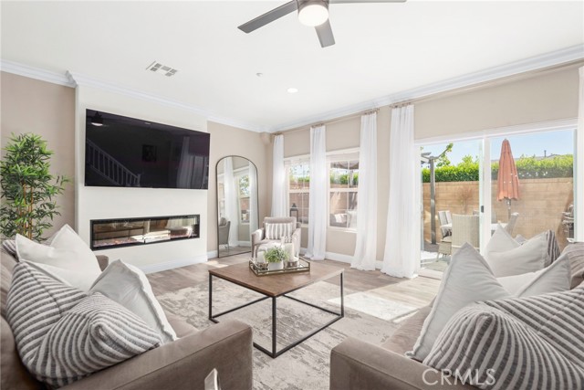 Welcome to Your Dream Condo in the Highly Sought-After Brighton at Etiwanda Community- BUILDING #3! This stunning residence boasts the second-largest floor plan in the community and showcases an open-concept layout that perfectly blends space, style, and comfort for modern living. Downstairs, you’ll find a beautifully upgraded kitchen with quartz countertops, a large island accented with pendant lighting, stainless steel appliances, a wall-mounted range hood, wine fridge, built-in microwave, an a backless gas range with oven, pantry, crown molding, central air and heating, and laminate flooring flow seamlessly into the spacious family room, complete with a cozy electric fireplace, ceiling fan, and sliding glass doors leading to a sunny tiled patio with a charming Pergola, perfect for relaxing or entertaining in style. Adjacent to the kitchen is a dedicated dining area, ideal for family meals and gatherings. The attached two-car garage with direct access features epoxy flooring and a large mirrored storage closet-ideal for storing seasonal décor and more. A convenient half-bathroom and additional storage closet complete the lower level. Upstairs, enjoy a laundry area behind elegant double frosted glass doors, with built-in cabinetry for added storage. The spacious primary suite boasts a charming chandelier, walk-in closet with built-in organizers, mirrored doors on both sides, and a chandelier. The en-suite bathroom offers a dual-sink vanity, a soaking tub, and a glass-enclosed shower with dual access (one leading to the soaking tub). Two additional bedrooms each feature ceiling fans and mirrored closet doors, offering comfort and functionality, they share a well-appointed full bathroom with double sinks, and a hallway storage closet offers even more convenience. The HOA dues cover water, insurance, and front yard maintenance, providing a low-maintenance lifestyle. Community amenities are plentiful, including a sparkling pool and spa, outdoor showers, BBQ and picnic areas, and playgrounds-perfect for leisure and fun.Prime location with quick access to the 15 and 210 freeways, and just minutes from Victoria Gardens Shopping Mall. This move-in-ready home perfectly blends luxury, function, and style-all within a well-maintained and desirable community. Don’t miss the opportunity to make it yours! Schedule a private tour today and experience the lifestyle you deserve!