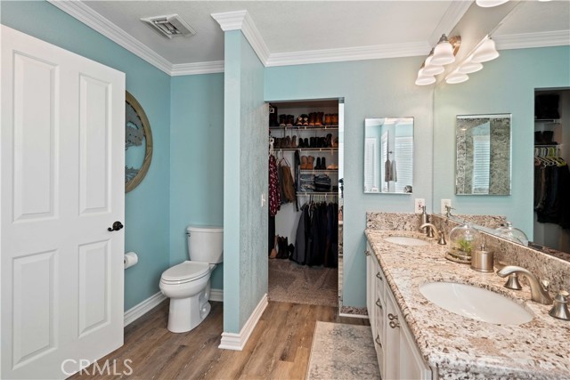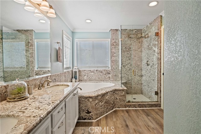 Welcome to this beautifully upgraded Stevenson Ranch home featuring a recently completed ADU, the perfect blend of functionality and opportunity! The PRIVATE ADU offers its own entrance, a spacious living room, a modern kitchen, a comfortable bedroom, washer, dryer and a full bathroom that will be ideal for extended family, guests, or potential rental income. Inside the main home, you’ll find elegant details throughout, including crown molding and abundant natural light. The open kitchen is a true highlight, showcasing granite countertops, stainless steel appliances, and plenty of cabinet space for all your cooking and entertaining needs. The floor plan offers one bedroom and full bathroom conveniently located downstairs and three additional bedrooms upstairs, providing flexibility for both family and guests. The primary suite impresses with soaring ceilings, while the primary bathroom offers a touch of luxury with a large soaking tub, dual-sink vanity and separate standing shower, all beautifully finished in granite. Step outside to enjoy the breathtaking VIEWS from the backyard complete with stamped concrete, a cozy fire pit, lush landscaping with lighting throughout, grass area and ample space to relax or entertain. With its versatile ADU, sharp curb appeal, upgraded interior, stunning outdoor living space with gorgeous VIEWS, this property offers everything you’ve been looking for and so much more! This will be a great place to call HOME!
