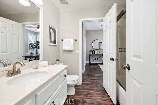 Discover this beautifully updated 5-bedroom, 3-bath pool home in the desirable Redhawk neighborhood of Rancho Palomar. This home is where Temecula lifestyle meets luxury and value being one of the lowest HOA and tax rate neighborhoods in Redhawk. Pride of ownership abounds in this open-concept living residence, offering owned solar, modern upgrades, high ceilings, and abundant natural light throughout. Step into a remodeled kitchen that will impress even the most discerning buyers with white shaker soft close cabinetry, quartz countertops, a modern range hood, gorgeous designer backsplash, floating shelves, stainless steel appliances and a large island open to the family room with a built in microwave, ideal for entertaining and everyday living. The home showcases LVP flooring, plantation shutters, neutral paint, brand new carpet in the bedrooms, and a bright, airy feel. Upstairs through a grand double door entry you will find a spacious primary suite which boasts vaulted ceilings, natural light, dual closets, and a 5 piece en-suite with a walk-in shower, double sinks, and a separate makeup vanity. The remaining three bedrooms with brand new carpet are just down the hall as well as a shared bath with a double sink vanity, plus a flex/loft room that can easily serve as a 6th bedroom, home gym, playroom, or theater for movie nights at home. Back downstairs you will find another full bedroom and full bath, perfect for multi-generational living, guests, or a home office. Enjoy parking your cars in an epoxy-finished 3 car garage with an EV charger, modern workspace, and storage. The large and spacious backyard offers room to relax or entertain with a pool that was resurfaced and retiled 1 year ago with a StoneScapes Pebble lifetime warranty , new pool equipment, Crepe Myrtle trees, and a lush green lawn perfect for mini soccer games, backyard BBQ entertaining, or even a volleyball court. The manicured front yard exudes curb appeal, with low upkeep! Located minutes from the I-15 freeway in the desirable South Temecula area, this home offers an easy commute to San Diego or Orange County, making it perfect for buyers seeking more space, top-rated schools, and a high-quality lifestyle with nearby amenities. Zoned for the acclaimed Great Oak High School, and close to shopping, dining, Temecula Creek Inn, the Redhawk Golf Course, Pechanga, Old Town, and Temecula’s famous wineries, this home is well appointed and ready for holiday entertaining!