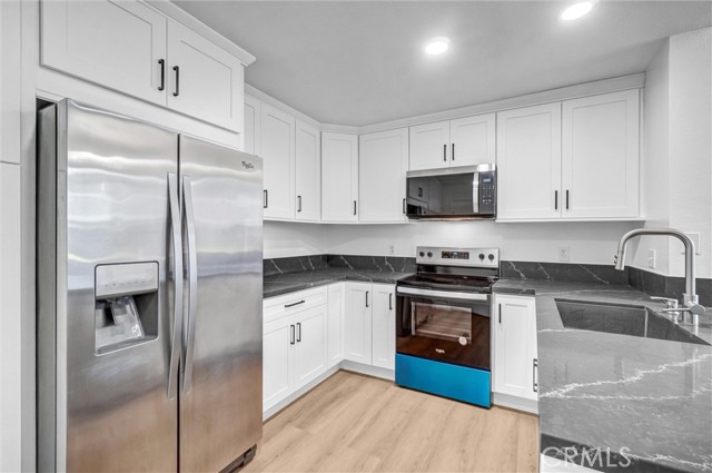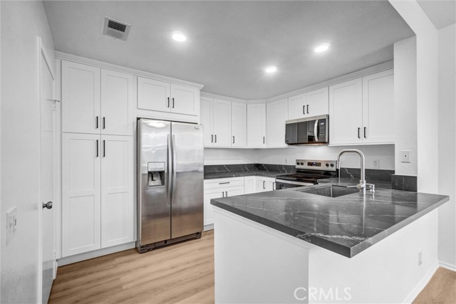 Discover elevated living at 243 Huntington Irvine, a thoughtfully reimagined two-bedroom, two-and-a-half-bath townhome nestled within one of Irvine’s most tranquil and sought-after Northwood Horizon Communities. Completely renovated in 2025, this residence showcases a harmonious blend of modern elegance and functional design. The expansive main level welcomes you with luminous luxury vinyl flooring and an open-concept layout that flows seamlessly into a chef-inspired kitchen. Outfitted with a sleek quartz countertop, premium stainless steel appliances, electric cooktop, deep basin sink with designer fixtures, and crisp white shaker cabinetry, this space is ideal for both quiet evenings and stylish entertaining. The spacious living room is enhanced by an upgraded smart thermostat, ensuring optimal comfort and climate control throughout the day. A dedicated in-unit laundry room offers generous storage and everyday convenience. Upstairs, the spacious and bright and airy primary suite features a newly updated vanity and serene ambiance, while the secondary ensuite bedroom provides flexibility for family, guests, or a home office. Step outside to a generous front patio — perfect for morning coffee or unwinding in the evening air. Parking is effortless with a shared one-car garage and an additional carport. Residents enjoy access to resort-style amenities including a sparkling pool and spa, along with ample guest parking. Ideally located within the award-winning Northwood High School district and just moments from premier shopping, dining, parks, and easy access to the 5 Freeway and 133/241 Toll Road, this home offers a rare combination of luxury and lifestyle in the heart of Irvine. Now available for lease — experience refined Irvine living at 243 Huntington.
