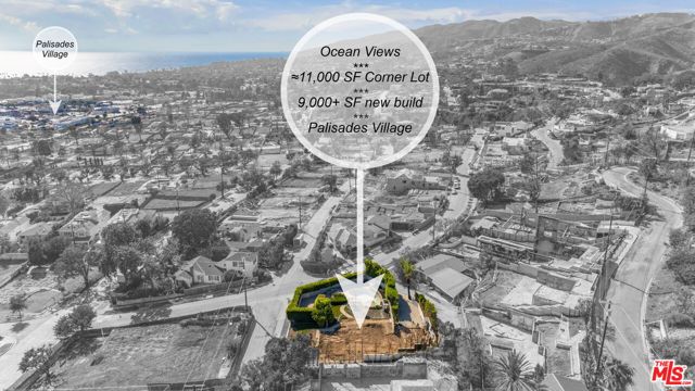 Rare 11,000 square foot mostly flat and elevated corner lot near the Palisades Village. The property is cleared and ready for brand new construction of a large 3-level new home - upwards of 9,000+ square feet under current building codes (not in the coastal commission zone). 14643 Whitfield Ave. sits above the Alphabet Streets and a new construction home will have breathtaking panoramic ocean views and a spacious backyard on its larger-sized lot. Additionally, this corner, coupled with a short road in the back, creates flexibility in designing the exact location of a garage. The property resides just moments from the Palisades Village known for boutique shopping and award-winning restaurants; top-rated local schools, scenic hiking/mountain biking trails, bike paths, and world-class beaches.Adding to this unique offering, this property was last on the market 65 years ago. This is not simply another Pacific Palisades land sale; it is a chance to claim a piece of Palisades history that is nestled within the coveted Chautauqua Heights subdivision, celebrated for its expansive lots and iconic ocean views. The previous/original home was the 53rd house ever built in the Palisades back in 1924, a residence cherished for generations. Its story speaks to permanence, heritage, and the timeless allure of this coastal enclave. And now it's ready for the next chapter and will be part of the resurgence of the Pacific Palisades.EPA (Phase 1) remediation & debris removal (Phase 2) are both complete. The foundation has also been removed to prepare for new construction. New home builds are well underway in the neighborhood, with the Caruso Village set to reopen in 2026. Some schools are already back and some businesses are reopened, and others are slated to reopen. Once complete, the Pacific Palisades will be more beautiful than ever before as it's still one of the most highly desired coastal enclaves in all of California.