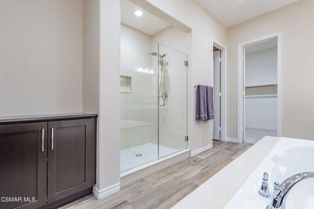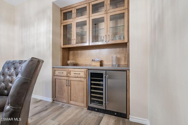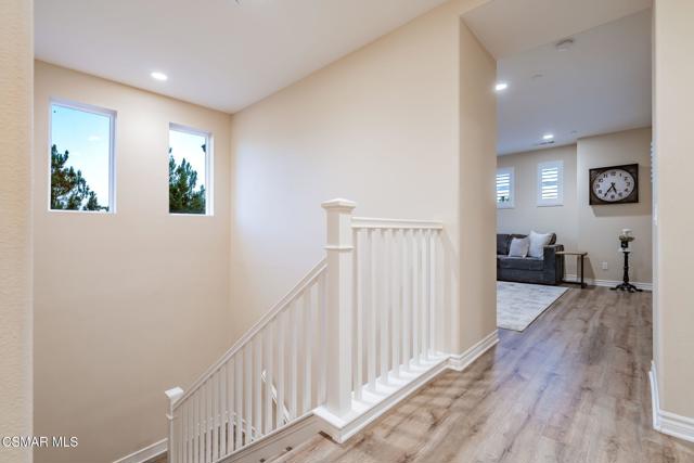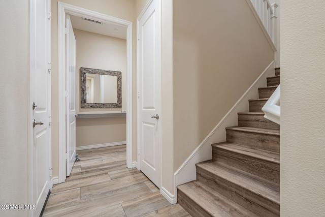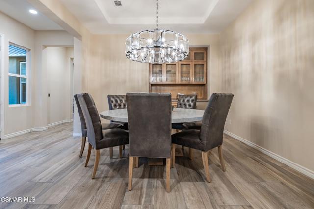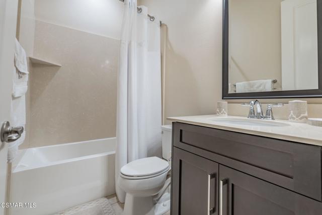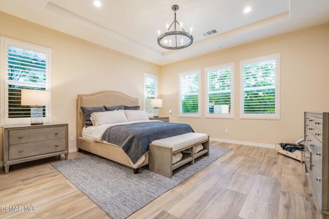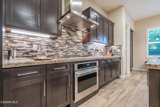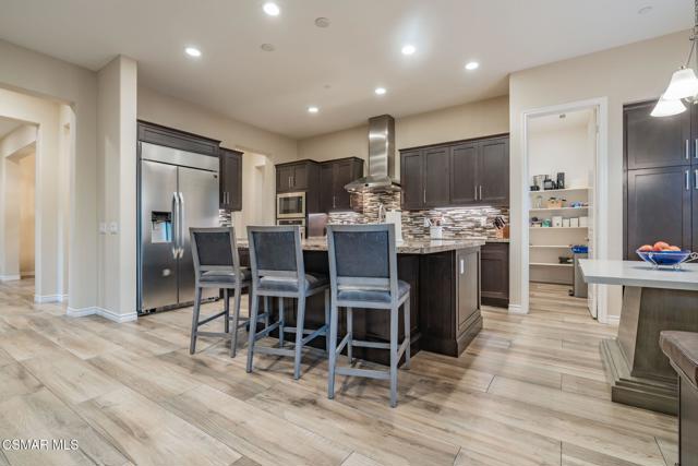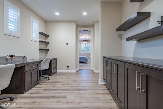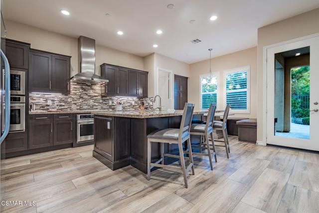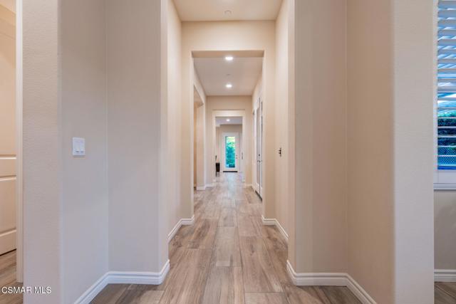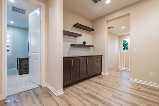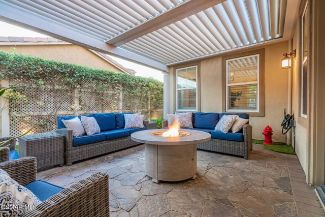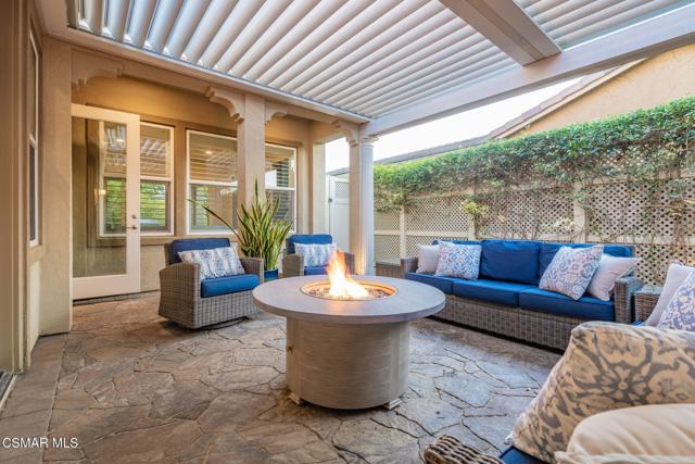 Lives like a single story with Primary Bedroom Downstairs. Nestled adjacent to the prestigious Moorpark Country Club, this exquisite home in the gated community of Meridian Hills offers timeless French Craftsman charm with modern luxury and thoughtful design. One of the most desirable floor plans in the neighborhood, this residence lives like a single story, with the Primary Suite and a guest bedroom--both with full baths--conveniently located downstairs.The Primary Suite is a serene retreat featuring plantation shutters, a spa-like bath with soaking tub, oversized shower, dual vanities, and a spacious walk-in closet. The open-concept living area showcases a gourmet kitchen with upgraded built-in appliances, a large island perfect for gatherings, soft-close cabinetry, and one of the largest pantries in the community. The family room's multi-slide glass doors open to a California Room, creating seamless indoor-outdoor living and the perfect setting to enjoy Moorpark's breathtaking sunsets.The backyard is an entertainer's dream, complete with a private pool and spa enhanced by fire bowls, waterfalls, and a built-in BBQ bar surrounded by beautiful pavers. A private side courtyard with a motorized louvered patio cover offers the perfect shaded escape for morning coffee or reading with your favorite pup.Upstairs, you'll find three additional bedrooms, a loft with built-in desks, and a spacious bonus room with custom cabinetry, mini fridge, and ample wall space for a large TV--ideal for a media room, game room, or private retreat.Additional highlights include fully paid solar with power wall, epoxy-coated 3-car garage with dual access doors, upgraded lighting and ceiling fans, tray ceilings, 8-foot doors, and custom shutters throughout.Experience refined living, elegant details, and energy-efficient comfort in one of Moorpark's most desirable communities. Come see how perfectly this home fits your lifestyle.