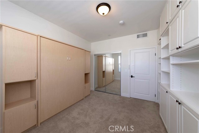 Beautiful Newer Construction in a Desirable Senior Community This well-maintained top floor unit offers a spacious and functional layout with two bedrooms featuring sliding mirrored closet doors and a large living room with an adjacent dining area—perfect for both relaxing and entertaining. The second bedroom is thoughtfully designed with custom built-in cabinetry and shelving, as well as a Murphy bed unit that maximizes space and flexibility, making it ideal for guests or a multi-purpose home office. The kitchen is well-appointed with recessed lighting, granite countertops, and stainless steel appliances, including a refrigerator. The home features two bathrooms—one with dual sinks, a clear glass shower enclosure, and travertine finishes; the other with a bathtub, glass enclosure, and travertine tilework. A hallway laundry closet includes side-by-side washer and dryer hookup, plus a storage rack for added convenience. Enjoy outdoor living on your private balcony, accessible from both the primary bedroom and the living room. Additional features include air conditioning, wood blinds or shutters throughout, and two-car tandem parking (spaces 31 & 32) in the subterranean garage with elevator access. Community amenities include a spacious central courtyard, a fitness center, and a clubhouse. Located directly across from Wilson Park, which hosts a vibrant farmers market twice a week, and within walking distance to groceries, restaurants, Del Amo Fashion Center, Starbucks, banks, and more. Beaches and major freeways are just minutes away. Additional Note: • This is a senior complex: at least one resident must be 55 or older, and a spouse or co-occupant must be 45 or older.