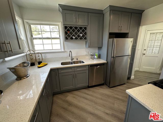 Situated in premier location within the esteemed Leimert Park neighborhood. This upper unit is updated with modern touches yet traditionally styled. Its coveted floor-plan allows for easy separation of the space for privacy when you have guests. To the left of the unit you can access spacious, natural-light filled living room & dining room both with opulent views of a tree-lined street through floor to ceiling windows, seamlessly flowing into a modern, gourmet-styled kitchen that features a uniquely built-in wine rack, quartz countertops, and stainless steel appliances. Other notable highlights include an in-unit washer & dryer, tons of storage space, and easy access to the rear and front entrance of the building. The bedrooms feature remote controlled ceiling fans and 2 closets each (one bedroom holds 2 sliding mirror closet doors). 4219 Creed Ave is conveniently located by multiple options for shopping, dining, parks, entertainment, and public transportation. It is minutes away from the 10, 110, and 405 freeways. All appliances are included in the rent.