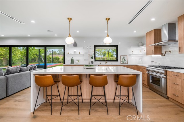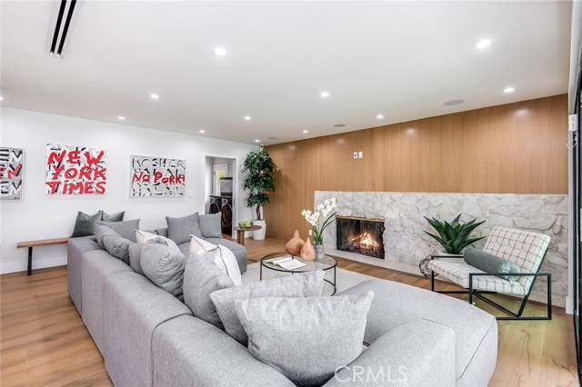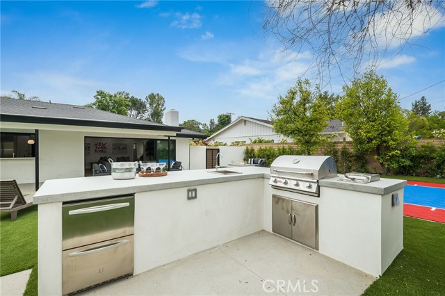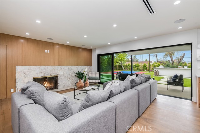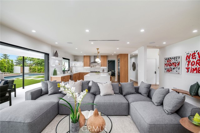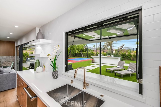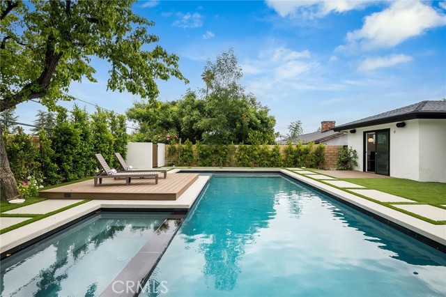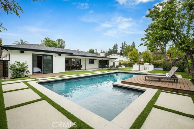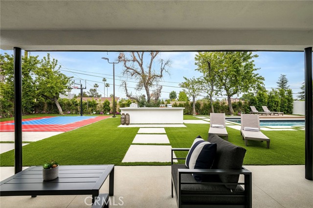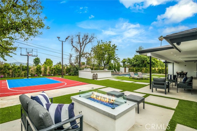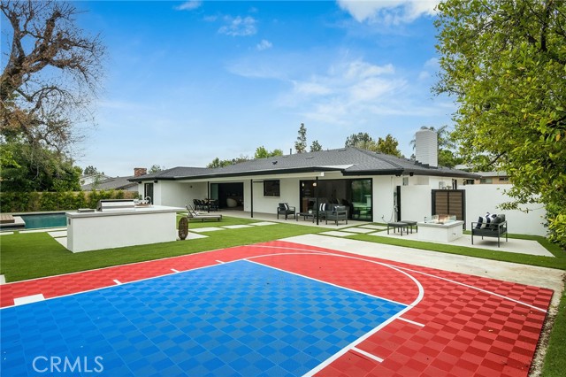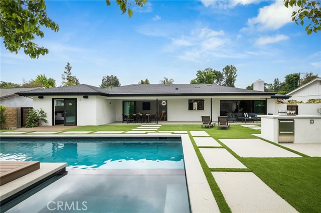 Offered fully furnished, this long or short term rental property (3 month min) offers everything desired in a luxury rental. A perfectly reimagined mid-century architectural find, found in the loveliest of neighborhoods, and appropriately situated in a peaceful cul-de-sac. Completely remodeled, yet retaining all the character and authentic feel, so difficult to find in new construction! With gracious and expansive curb appeal, and inviting front porch, this home does not disappoint, leading you into a beautifully appointed entry, with a spacious yet cozy office to your left, and the true heart of the home, the welcoming kitchen and family room, complete with original fireplace and tile. Designed for entertaining, this home features a dining room true to period with informal sitting area. All the main living areas feature sliders, opening out into the spectacular, ultra private backyard oasis, complete with sparkling pool, basketball court, fire pit area, outdoor kitchen and seating, with significant outdoor lounging and dining areas. No unchecked boxes here, this is a true family home with all of your entertainment needs exceeded. Your primary retreat, complete with its own outdoor patio, is located at the far end of the house, offering privacy, with significant built-in closets and storage and dressing areas, including built in vanity, and gorgeous bath. Both secondary bedrooms are en-suite, both spacious and with extensive storage and light. A convenient side entrance opens to gorgeous and very convenient, mudroom and laundry, with a guest bathroom.