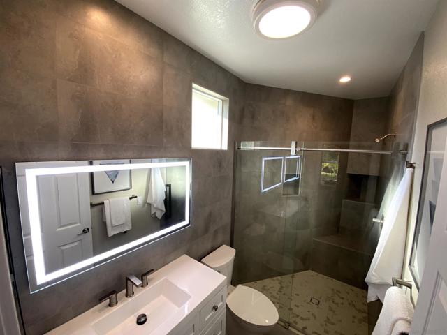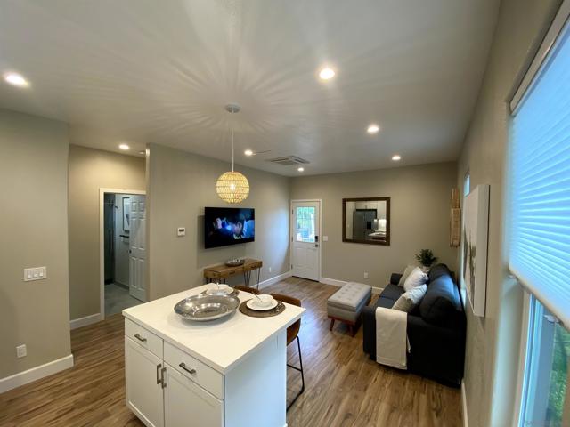 Escape to your own, private sanctuary in Carlsbad! This immaculate, furnished 1-bedroom home with a private, gated patio with seating and outdoor grill offers the perfect blend of modern luxury and serene coastal living. Forget crowded complexes; this is your exclusive haven, boasting a private entrance and ample street parking for your convenience. Step inside a light-filled great room, featuring a full-sized kitchen equipped with elegant GE Profile stainless steel appliances and crisp white quartz countertops, including a convenient island for dining. The inviting living area is designed for relaxation, with a streaming-ready smart TV, a comfortable sofa bed, and a stylish adamant. Indulge in the spa-like modern bathroom, featuring a huge walk-in shower with floor-to-ceiling tile, a sophisticated 42" vanity, and an LED-lit mirror. The spacious Master Bedroom is a peaceful retreat, furnished with a queen-sized bedroom set, a plush hybrid mattress, a stacked GE washer/dryer closet, a closet with an organizer, and mirrored closet doors for added style and functionality. Enjoy independent living with your own HVAC split air unit, a separate tankless water heater, and dedicated Wi-Fi access. Your private patio includes a gas grill and outdoor dining. For added convenience and security, the home features USB outlets and keyless entry. Beyond your private oasis, you'll discover a vibrant Carlsbad lifestyle right at your fingertips. Walk to the Dove Library, catch a movie at Cinepolis Cinemas, grab groceries at Vons Market, or savor delicious meals at local favorites.