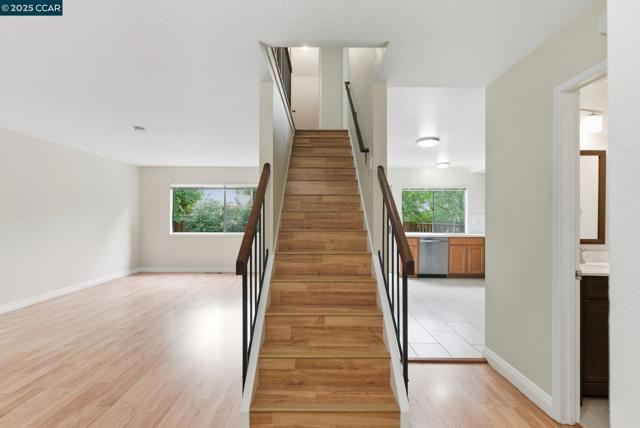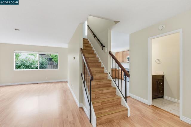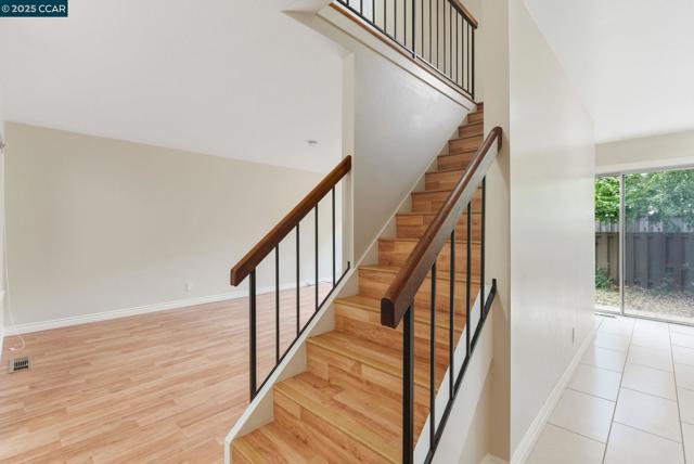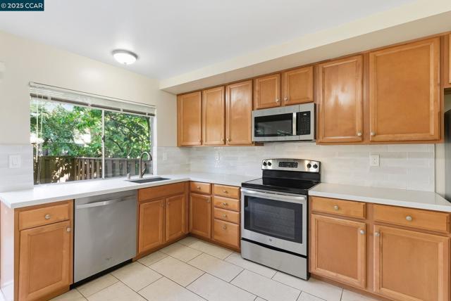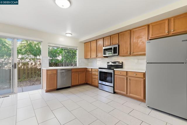 Stylishly renovated end unit in desirable Virginia Hills surrounded by lovely trees & large grassy areas. The generous size kitchen boasts quartz counter-tops, tiled back-splash, newer SS kitchen appliances & a walk-in pantry. Kitchen sliding door leads to a spacious backyard patio, the perfect place to garden or enjoy an outdoor BBQ while lounging in the sun. This freshly painted 3 bedroom, 2.5 bath includes an attached 2-car garage w/interior access, laminate flooring throughout, heating & air conditioning, indoor laundry w/newer washer & dryer, superb linen & closet storage options. All bathrooms have newer vanities & lighting. The primary bedroom offers a gorgeous tiled shower stall, a walk-in closet & a delightful view of the yard. Offers guest parking, club house, pool and open grass areas. Short drive to either quaint downtown Lafayette or urban chic Walnut Creek. Near 680, 24, 4 and BART. Located in the high-scoring Mt. Diablo School district. No smoking please. Open House 11 AM to 1 PM on Wednesday October 22.