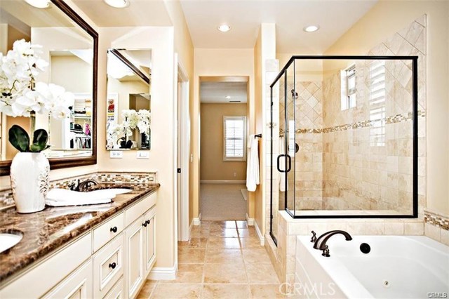 Live life to the fullest in this Absolutely gorgeous, highly upgraded detached home sitting atop the most sought after, serene, private location in Woodbury. One bedroom with full bath downstairs (offers wall to wall of built in cabinets). Highly upgraded home with stunning natural stone floors, Plantation shutters, crown molding, upgraded cabinetry throughout, custom paint, recessed lightings, and much more. Grand living room lights up with rows of windows, custom wood ceiling, Surround sound system, built-in media niche, custom fireplace and generous dining room with double French doors leading to the entertaining patio. Enjoy cooking in your gourmet kitchen with gigantic Center Island, breakfast bar, custom granite countertop, designer full back splash, built in SubZero refrigerator, wine cooler and double French doors leading to the beautiful Roger's Garden designed patio with water fountain, pavers, planters and planted pots. Highly upgraded enormous master bedroom with luxurious fireplace, built in dresser drawers, and lavish master bath with abundant use of natural stones throughout, Jacuzzi tub, Mirrored closet door, and stone counter top vanity with double sink. Enjoy the vast amenities in Woodbury has to offer plus walk to award winning elementary and Woodbury Town Center where shopping & fine dinning awaits.