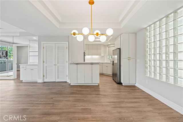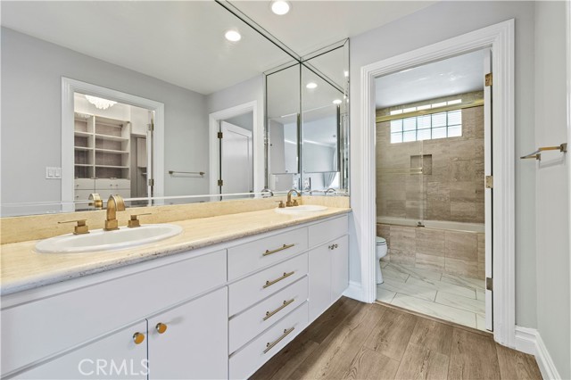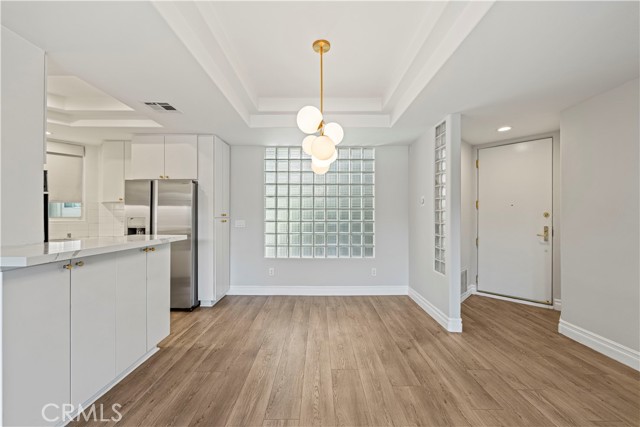 Immaculate two bedroom, two bath condo in the incredible Montana Regency located in prime Westside where S. Bel Air, Brentwood & Westwood meet. Brand new wide plank laminate flooring throughout. The light-filled living, dining and kitchen areas comprise the large open floor plan with a beautiful corner fireplace and large sliding doors. The updated Kitchen features Quartz counter tops, high-end stainless steel appliances, plenty of cabinet and counter space and a breakfast bar. Primary bedroom has en-suite bath with dual vanity, hall closet as well as a large walk in closet. The 2nd bedroom is located on the opposite side of the unit with its own walk in closet and bath. Stackable washer/dryer in unit. Located on Floor 1 - one level above the street in this building with easy access to the pool, sauna, newly refurbished gym, racquetball court and party/rec room. Two cars garage parking included along with 12 guest parking spots. Unbeatable location close to UCLA, Brentwood, Bel-Air and Century City. Condos in this building rarely come on the market!