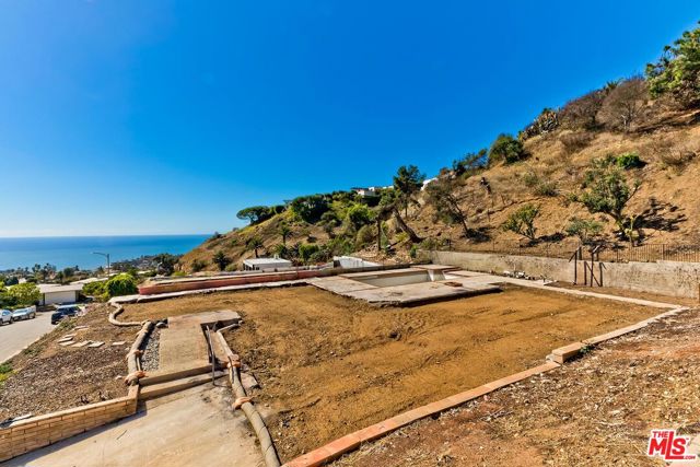 Located in Marquez Knolls with exceptional ocean, city and hillside views, this large parcel of land presents an opportunity to contribute to the area's resurgence following the Palisades Fire. This was one of a few select lots chosen by Mr. Lachman for his model homes when he originally developed the area. Perfectly situated with panoramic ocean views from much of the property, plus added benefits such as: views of the LA basin allow for enjoyment of 4th of July fireworks, fruit trees on the hillside above, and a backyard offering privacy and occasional wildlife sightings. Just minutes from the Palisades Village, future residents will enjoy effortless access to boutique shopping, acclaimed dining, and everyday essentials all within a peaceful, scenic environment. As the community rebuilds and renews, this property stands as a symbol of resilience and opportunity. Don't miss your chance to create your dream home in one of Southern California's most prestigious coastal enclaves. Original pool still exists. Phase 1 and Phase 2 have been completed. Neither Seller nor Broker/Agents guarantee the accuracy of the square footage, lot size, permits or other information concerning the conditions or features of the property. Buyer is advised to independently verify the accuracy of all information (including square footage) through personal inspections and with the appropriate professionals. See DOCS for Offer Guidelines.