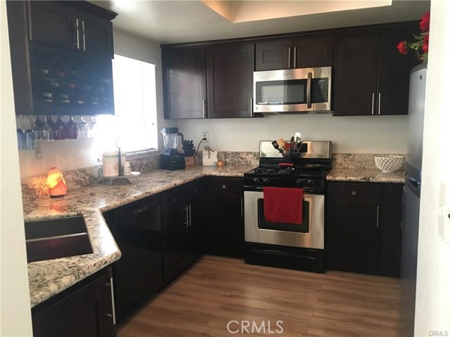Beautiful condo nestled within the highly desirable Viewpointe gated community! This stunning upper-end unit offers upgraded living throughout with 2 spacious bedrooms, 2 full baths, and approximately 1,000 living space. Step inside to a bright, open living room with soaring ceilings, a cozy fireplace, and a private balcony—perfect for relaxing or entertaining. The gorgeous kitchen features granite countertops, stainless steel appliances, and ample cabinet space. The primary suite includes a beautifully upgraded bath with dual sinks and a walk-in shower. Additional highlights include inside laundry, a one car attached garage, and an additional covered carport space. This community offers resort-style amenities such as pools, spas, security patrol, and plenty of guest parking. This condo truly has it all!