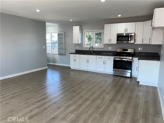 Welcome to this charming upstairs unit featuring a staircase entrance that gives it a unique, elevated feel. The open floor plan connects the kitchen and living room, creating a bright, inviting space perfect for relaxing or entertaining. The kitchen features white cabinets, sleek granite countertops, and essential appliances including a stove and microwave, perfect for cooking up your favorite meals. Thoughtfully designed, the kitchen and living area are separated from the bedroom and bathroom spaces, offering privacy and a comfortable flow throughout the home. Stay cool on hot days with the mini-split AC, and enjoy the full bathroom with a tub for soaking and relaxation. Plus, the unit comes with 2 dedicated parking spaces, a TRUE convenience in Los Angeles. Modern, practical, and full of character! This upstairs retreat is ready to welcome you home!