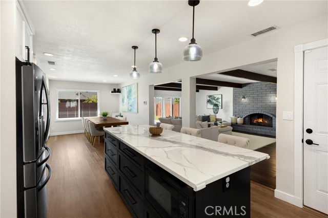 This beautifully updated 4-bedroom, 2-bath home offers nearly 2,000 sq ft of comfortable living, all on one level. Step inside to new flooring and a remodeled chef’s kitchen with a large island, sleek countertops, and plenty of prep and storage space. The dining area is spacious with plenty of room for everyday meals to all your gatherings. The kitchen flows into a bright, open family room with a cozy fireplace and direct access to the backyard, ideal for everyday living and entertaining. Enjoy indoor-outdoor living with a large patio and plenty of room to relax and entertain; perfect for BBQs, and gatherings while enjoying the California weather. Additional upgrades include a New Roof, New AC and Furnace, and many newer windows throughout, bringing peace of mind and energy efficiency. Centrally located near great schools, shopping, and dining. This home combines classic single-story living with thoughtful modern updates and is ready to move in and enjoy.