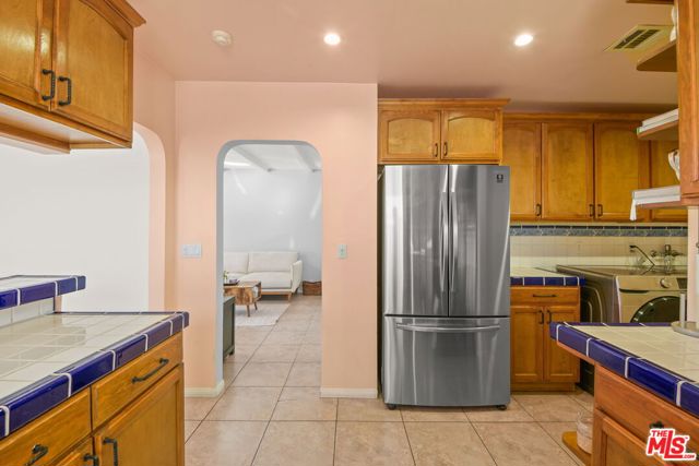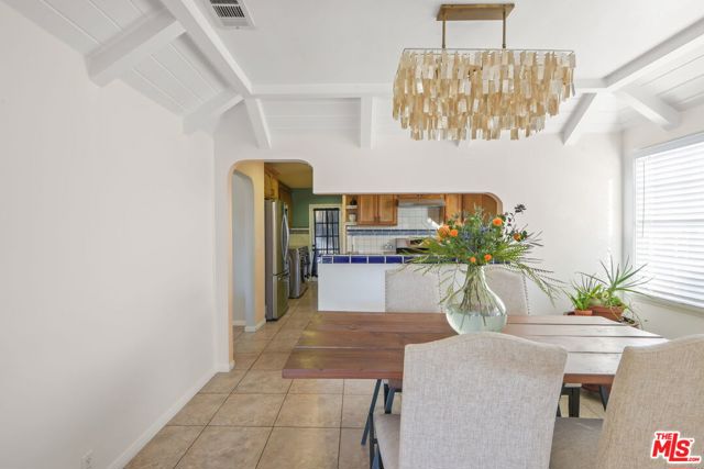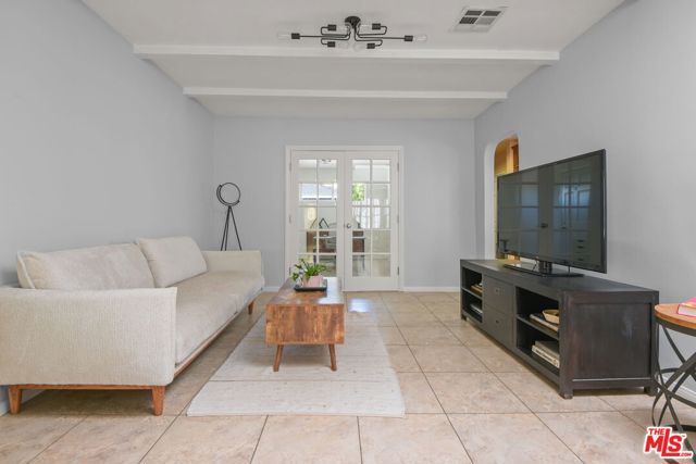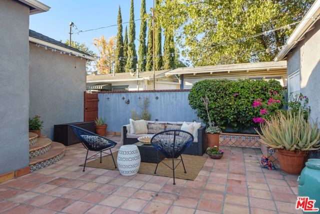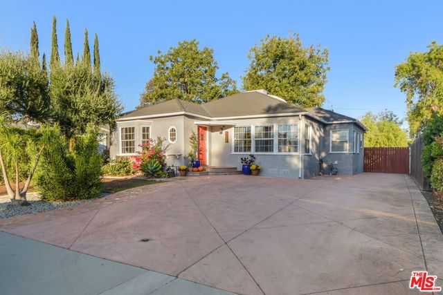 Located on a beautiful tree-lined street adjacent to NoHo Arts District, this 1940s ranch offers all the character you want with the functionality you actually need. Inside, natural light flows across hardwood and tile floors. The living room and den both feature classic beamed ceilings, while the den's skylight floods the space with sun. The dining room's pitched wood ceiling adds architectural warmth. The kitchen delivers ample cabinet storage, generous counter space, and a classic work triangle layout that keeps the host connected with dinner guests. The home offers three bedrooms: two traditional bedrooms plus a third space with French doors, currently used as an office, that functions perfectly well as a home office or third bedroom (w/o built-in closet). Beautiful natural light flows throughout. The primary bedroom opens onto a private patio surrounded by succulents, a serene spot for morning coffee or evening relaxation. The practical updates are all in place: updated roof, copper plumbing, upgraded electrical, central A/C, and indoor laundry area. A perfect floor plan connects seamlessly to the backyard. The gated driveway and generous yard complete with two potted fruit trees, Meyer lemon and apricot provide plenty of room for outdoor living, gardening, or future pool potential. A converted garage offers a fully finished, climate-controlled sound studio, plus an adjacent unfinished room ready to become a recording suite or control room. Perfect for musicians, content creators, or anyone working from home. Just minutes from NoHo's theaters, Metro station, and vibrant dining scene, this is a rare find in one of LA's most creative neighborhoods.