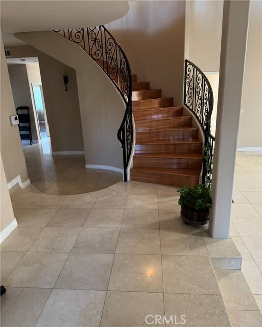 This 5 bedroom, 4 and half bath home in great area of Northridge. Well maintained front lawn invites you to the formal entry. Large living room has wrought iron staircase rises to vaulted ceilings that leads to the living room and dinning room. For entertaining, nothing could be cozier than the double sided fireplace. The dinning room leads to eat-in kitchen. Upgraded granite counter tops, stainless steel appliances, and plenty of storage. The kitchen opens to the large family room that leads to backyard. Downstairs Full bedroom and bathroom. Upstairs bright and spacious loft having built-in desks and cabinets. This space loft makes Great play area. Master bedroom suites has its own bath.