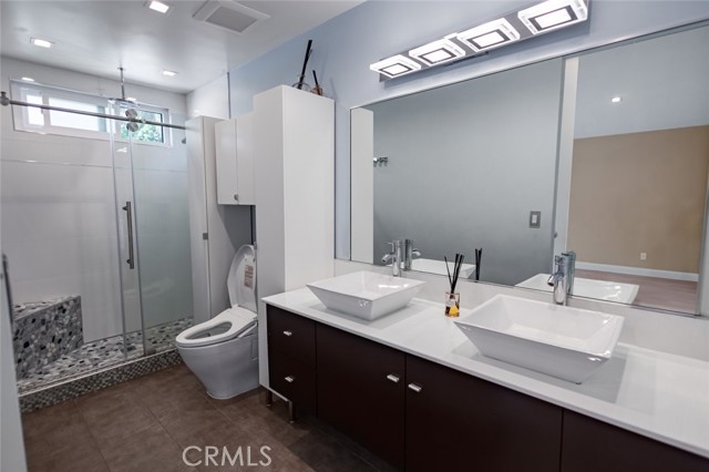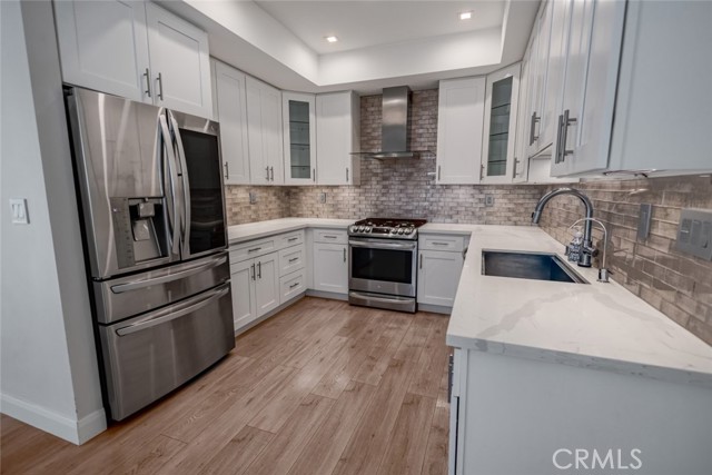Discover your private sanctuary at 10831 Roycroft Street Unit 18, nestled among towering trees in Sun Valley near Shadow Hills. This beautifully renovated modern residence offers a perfect blend of indoor and outdoor living with high end finishes throughout. Enjoy relaxing or entertaining on the spacious patio featuring a gazebo with fan, heater, TV, outdoor speakers, and lighting for year round enjoyment. Inside, the 3 bedroom, 2.5 bathroom layout offers an inviting living room that flows seamlessly into the dining area and fully remodeled kitchen. Upgrades include recessed lighting, an electric fireplace, smart home features, quartz countertops, newer cabinets, energy efficient appliances, a stylish range hood, touch faucet, and reverse osmosis filtration. The bedrooms feature vaulted ceilings, while the bathrooms showcase Porcelanosa tile, Toto toilets, Hansgrohe fixtures, a luxurious primary shower, and a deep soaking tub. Solid core doors, dual pane windows, and newer AC and furnace systems ensure year round comfort and peace. Parking includes an attached 2 car garage with a new insulated door, a private driveway with 2 additional spaces, and nearby guest parking for visitors. Community amenities include a sparkling pool and relaxing jacuzzi. Located in the uppermost cul de sac of the Sunkist Villas community, this home provides privacy and seclusion in a tranquil natural setting. Move in ready and thoughtfully designed, this lease offers modern comfort, style, and convenience in one of Sun Valleys most desirable neighborhoods.
