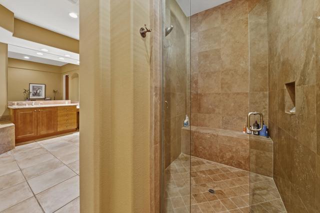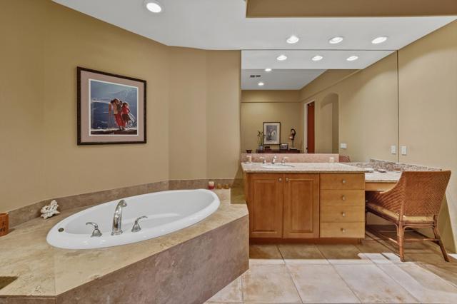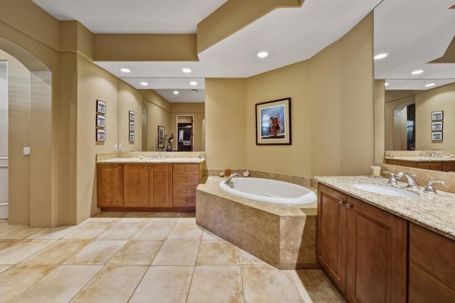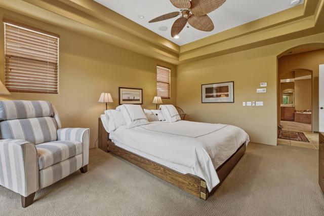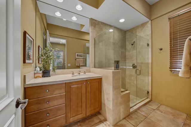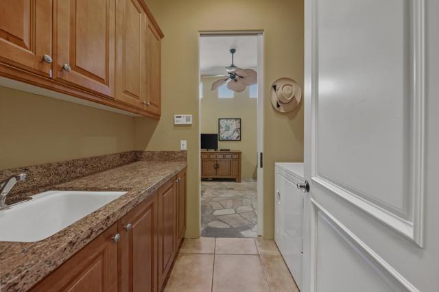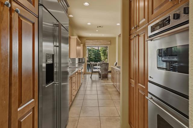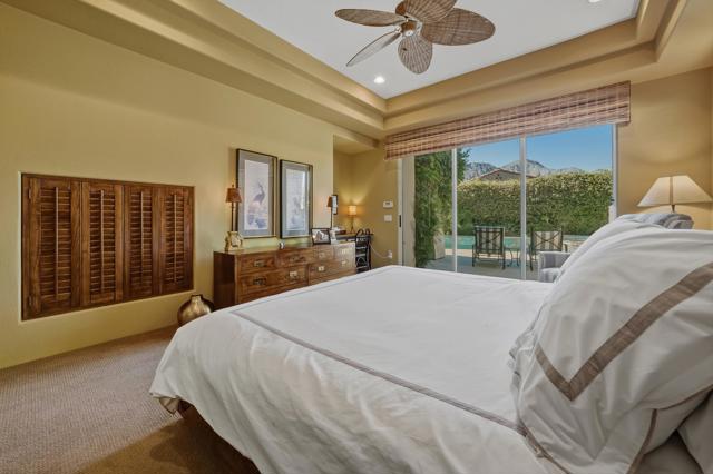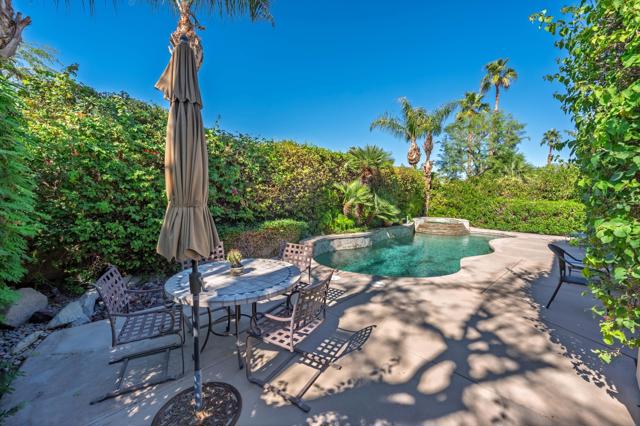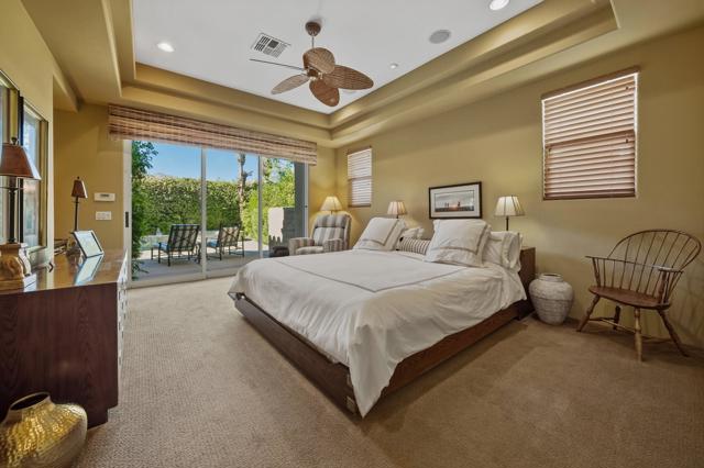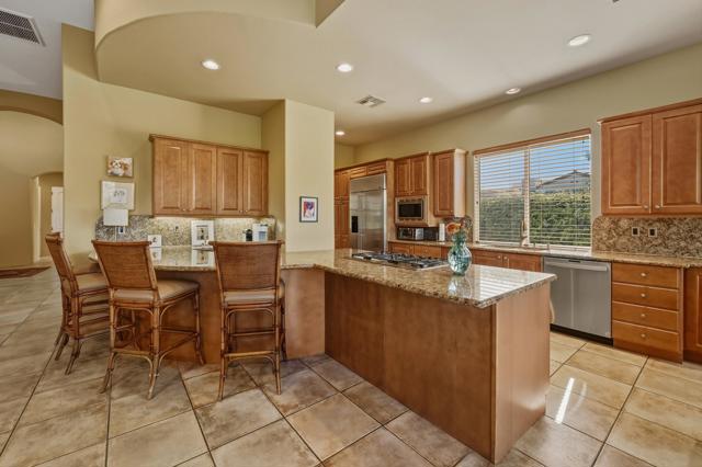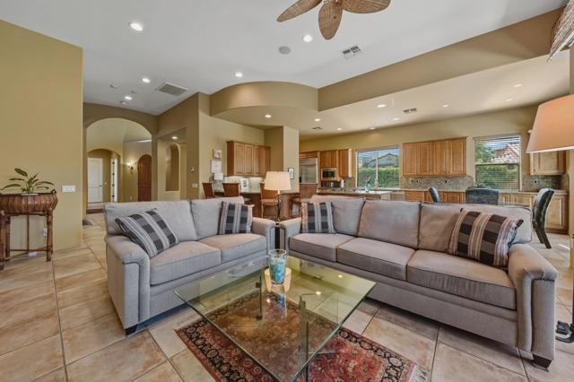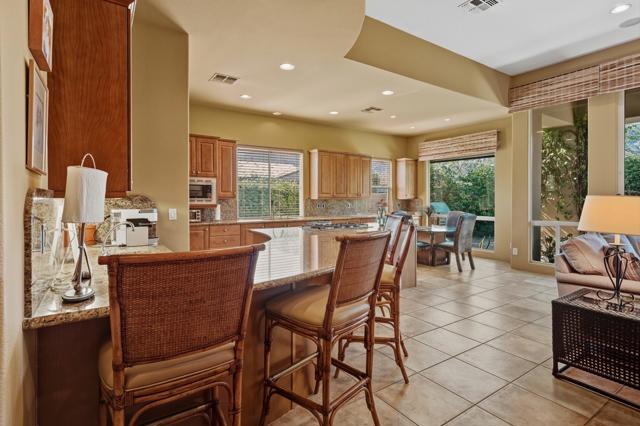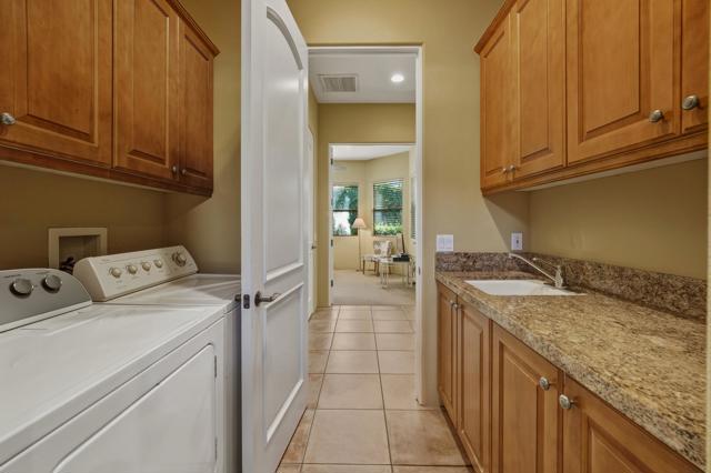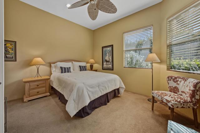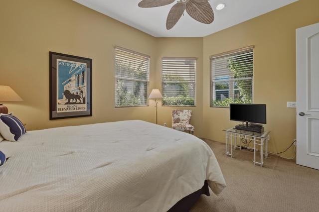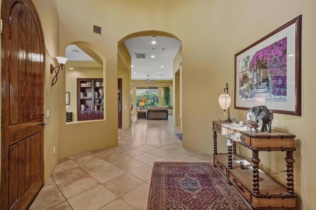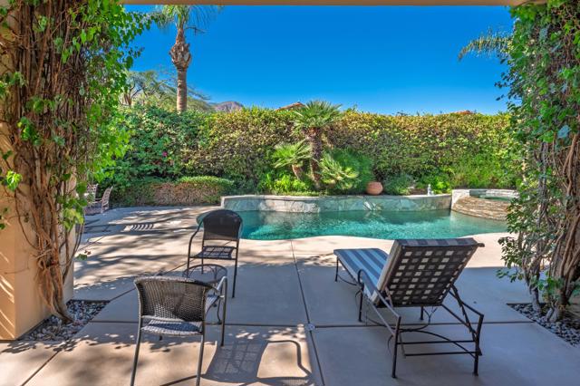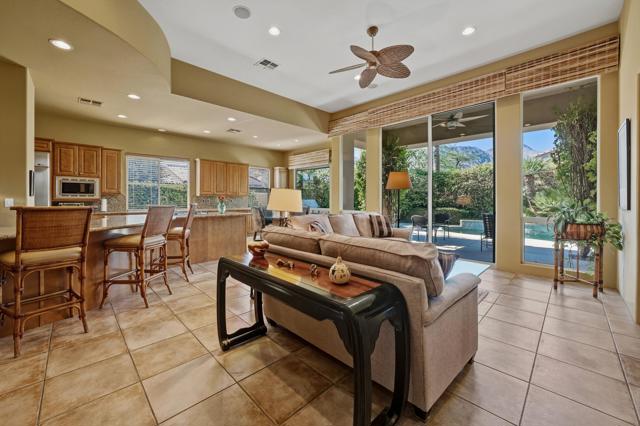 Discover Haciendas at La Quinta, an exclusive enclave of meticulously crafted homes by Sedona Homes, steps from the vibrant restaurants, shops, and live music of the iconic La Quinta Resort. Nestled near scenic hiking and biking trails, this corner-lot gem offers a serene, private backyard oasis with a pool, raised spa, built-in BBQ, and expansive covered patio perfect for dining and lounging. Inside, the spacious kitchen boasts abundant storage, stainless steel appliances, including a double oven and beverage center, a dining area, and an island breakfast bar. The adjacent great room, featuring a fireplace, built-in cabinetry, automatic shades, and a wall of glass, seamlessly connects to the outdoor entertaining space. A versatile dining room with built-in buffet and bookcases currently serves as a cozy den. The primary bedroom, with backyard access and a built-in desk, includes a luxurious bath with dual vanities, a dressing area, separate tub and shower, and a walk-in closet with extensive storage. The second bedroom offers a bath with a walk-in shower, while the casita, currently an office, features a fireplace, wet bar, beverage center, and another bath with a walk-in shower. A flexible bonus room off the spacious laundry room doubles as an office, den, or additional bedroom. Completing the layout is a two-car attached garage. The low $360 monthly HOA fee covers gated entry and common areas.
