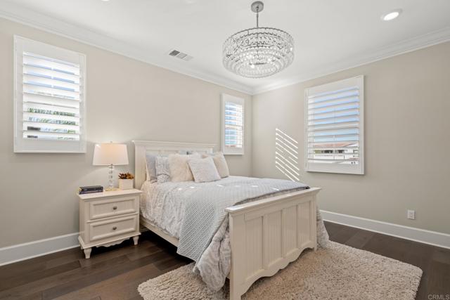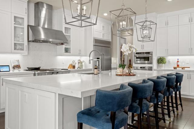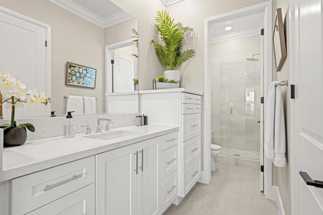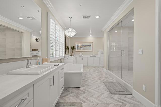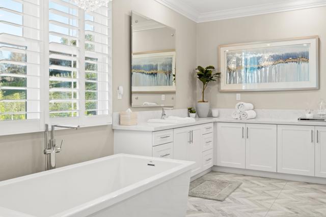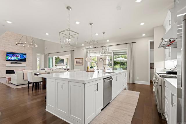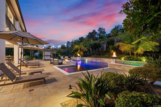 Welcome to modern elegance in The Lakes Above Rancho Santa Fe. Set on a landscaped acre, this striking Sterling Heights Plan 3 home blends luxury, privacy, and the Southern California lifestyle. Behind the gates of this prestigious enclave, discover a five bedroom, five and a half bath residence offering 5,665 square feet of refined living space. Clean architectural lines, 22-foot ceilings, and expansive glass walls fill every room with natural light and sophistication. Designed for effortless living and entertaining, the main level features a chef’s kitchen with premium finishes, a formal dining area, and an open great room flowing seamlessly outdoors through retractable glass doors to stunning covered outdoor California room with retractable shades for ample comfort at all times. A spacious guest suite and versatile bonus room—ideal for an office, gym, or playroom—complete the first floor. Upstairs, the primary suite is a serene retreat with a spa-inspired bath, dual vanities, soaking tub, walk-in shower, and custom dressing room. Three additional ensuite bedrooms with walk in closets and a loft lounge complete the second level. The 1.29 acre lot offers a backyard that is truly an entertainer’s dream with a sleek pool and spa, outdoor kitchen, sports court, and space for a garden or grassy play area. Also included are lime, lemon, orange, pomegranate, and fig trees along with other raised planter beds. Additional highlights include solar, whole-home water filtration, and a four-car garage. Optional membership at The Crosby Club includes access to golf, tennis, dining, and fitness amenities. Located within the award-winning Poway Unified School District and just minutes from hiking, dining, golf, and coastal access—this is luxury living at its finest.