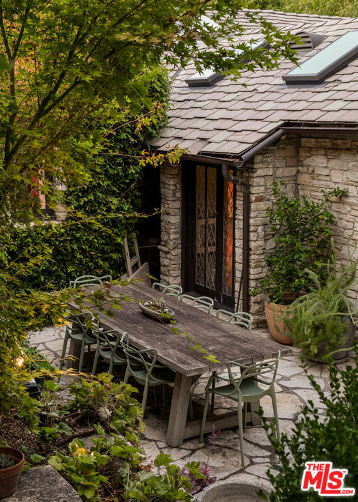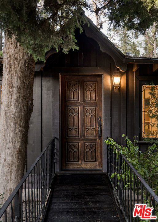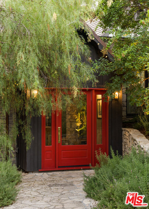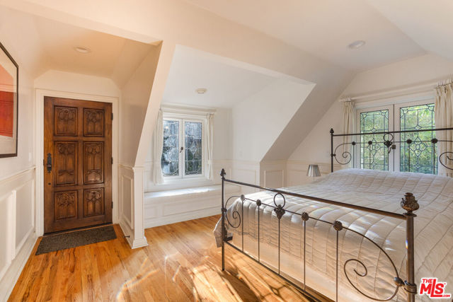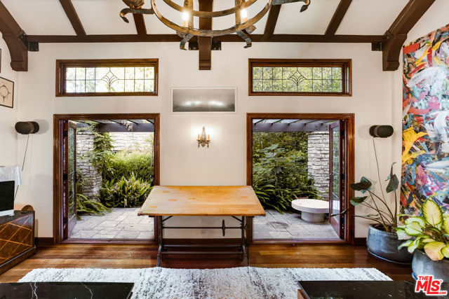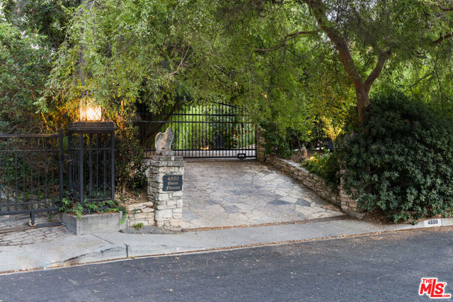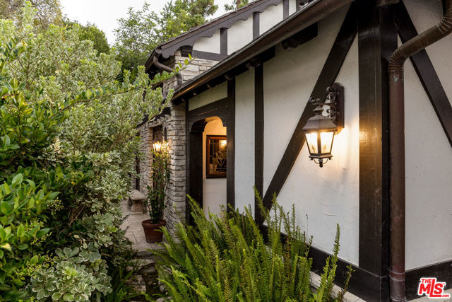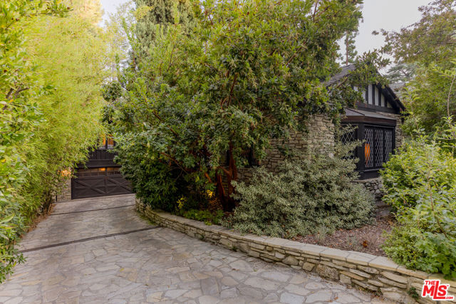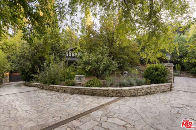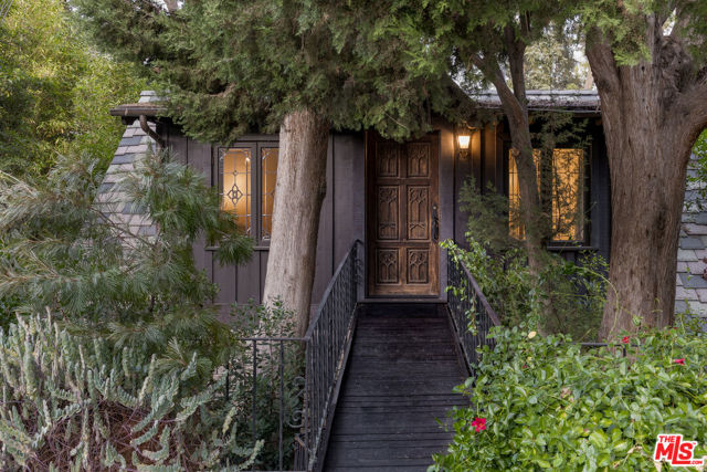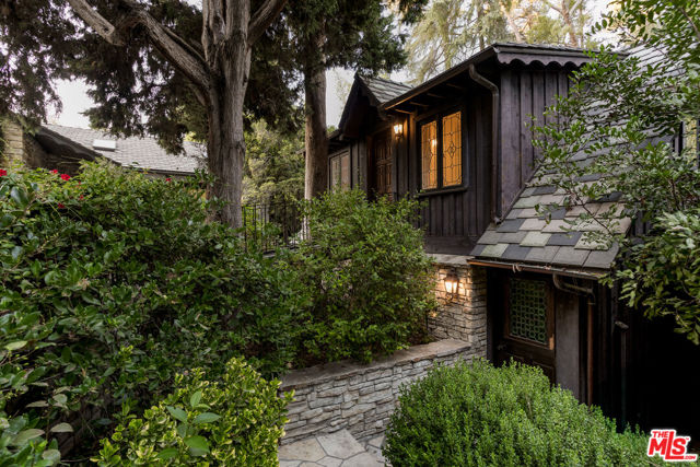 Secluded behind wrought iron gates, this historic Woodland Hills retreat revisits a magical era in the days of Hollywood. Originally owned by director Michael Curtiz, this private escape has housed some of Hollywood's biggest names. The original owner meticulously emulated the design from an English Cottswald cottage and imported materials and trees to build this retreat. The current owner has expanded on the property staying true to the architecture that makes it so appealing. Stepping into this one of a kind residence you will be surrounded by the elegant yet rustic environment this homes provides. From the exposed beam ceilings, oak flooring, iron and brass railings and stunning hand-made windows throughout. Significant recent upgrades and additions have been done in past few years adding a peaceful guest bedroom wing with 2 large en-suite bedrooms. A tastefully reimagined chefs kitchen was recently built with premium appliances and custom cabinetry. Boasting room for all your loved ones and guests, the property boasts Two detached guest quarters with its owns systems. One of which is perfect for home office, den or guest suite with beautiful vaulted ceilings and double French doors overlooking the impressive outdoors. Step outside to the serene grounds and enjoy a peaceful relationship with nature boasting a sweeping stream, waterfalls, terraced patios and a custom built workshop! Truly a one of one property offering unrivaled privacy and a magical environment to live and thrive.