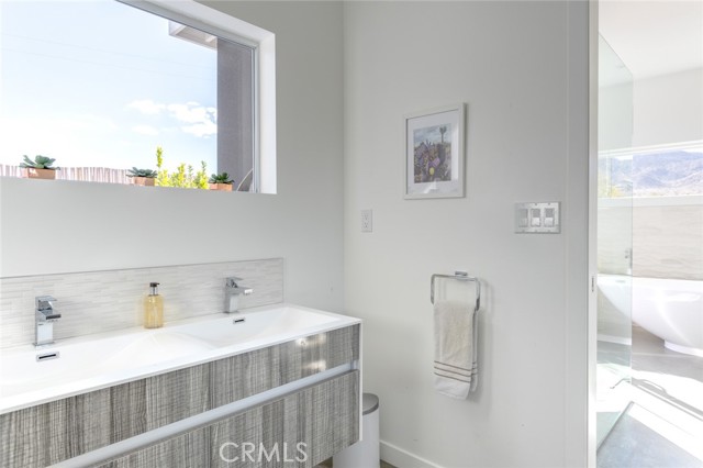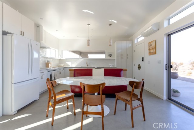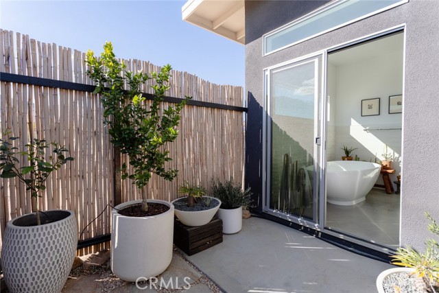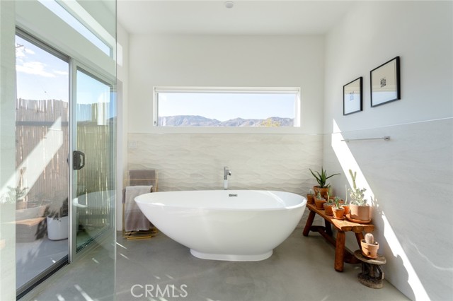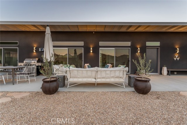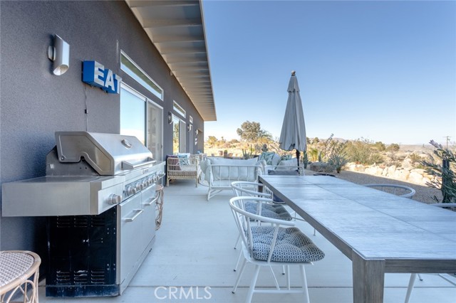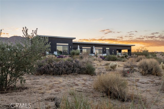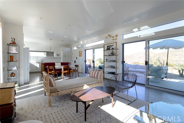 Contemporary Modern meets surrounding unbound nature in one of Joshua Tree’s most iconic areas. Meticulously designed and furnished 2-bed, 2-bath spread over nearly 2-Acres of land that doesn’t begin to explain the immersive, indoor/outdoor experience of this standout property. The main suite, for example, features sublime South African furniture, as well as a bright, oversized bathroom with huge soaking tub and a gated courtyard area through the sliding glass door for a private outdoor experience. In addition, a casita-style private entrance leads into the second bedroom, also with an en-suite full-bath. Sliding glass doors span the open floor plan of main living area, revealing a massive landscaped, event-ready, patio area and onward as far as the eye can see to boulder-laden National Park. Highly-rated short term rental due to the home’s many features plus a long list of unbeatable amenities that are included with the property, such as a hot tub, entertainment system, fire-table, security cameras, washer and dryer, and much more. Turnkey prepared to be taken over by new owners or retired into a long-term residence or superb primary residence with unmatched surroundings.