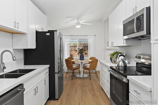 Welcome to 9212 Ronda Avenue, a charming, completely remodeled single-story home in the heart of Serra Mesa. Featuring 3 bedrooms, 2 bathrooms, and approximately 1,108 sq. ft. of living space, this home offers the perfect blend of comfort, convenience, and character. The light-filled living room with vaulted ceilings and new recessed lighting opens to the dining area and brand-new kitchen—creating a seamless flow ideal for daily living and entertaining. The primary suite includes a private en-suite bath, while two additional bedrooms offer versatility for family, guests, or a home office. Step outside to a spacious backyard with new sod and irrigation—perfect for play, gardening, or relaxing around a fire pit. The newly insulated attached garage provides additional storage or workspace. Thoughtfully updated throughout, this home features a new roof, permitted electrical panel, new wall furnaces, new dual-pane windows, new flooring, and fresh interior and exterior paint. Ideally located in one of Serra Mesa’s most desirable neighborhoods, this move-in-ready home offers easy access to freeways, shopping, dining, parks, and Snapdragon Stadium.