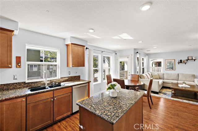 Nestled in the desirable community of Ladera Ranch, this beautifully updated 2-bedroom, 3-bath condo offers the perfect blend of modern living and convenience. Situated just a short walk from Oso Grande Elementary, the recently renovated water park, multiple local parks, and scenic Paseo walking trail, this home is ideal for those who enjoy both the tranquility of nature and the convenience of community amenities. Step inside and experience an abundance of natural light that fills every corner of this thoughtfully designed home. With custom blinds, recessed lighting, and engineered hardwood floors, the space feels both warm and welcoming. The open-concept layout features a spacious kitchen with sleek granite counters, natural tone shaker cabinetry, stainless steel appliances, and a walk-in pantry—everything you need for easy meal prep and entertaining. The convenient center island adds extra counter space and flows seamlessly into the large family room, where you can relax by the cozy fireplace or step out onto your private balcony to enjoy the fresh air. Upstairs, you’ll find two generously sized en-suite bedrooms, each with plenty of natural light and updated fixtures. The home also boasts a versatile loft area, perfect for a home office or additional living space. The updated powder room is a standout, featuring a new vanity, custom mirror, modern lighting, and new tile flooring. Additional highlights include a 2-car garage with direct access, a first-level mudroom, and plenty of storage space throughout the home. With a prime location in Ladera Ranch and a layout designed for modern living, this home is a must-see! Don’t miss your chance to experience all the charm and convenience at 73 Platinum.