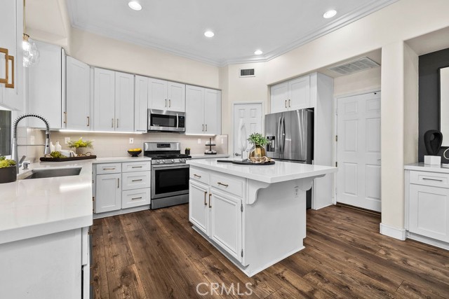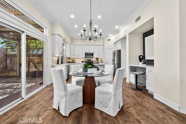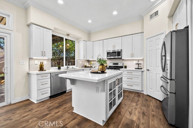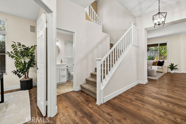 Beautiful home with one of the most desirable 4 bedroom 3 bath floorplans in the heart of Rancho Santa Margarita. Home is bright with an open layout and high ceilings. The main level includes a bedroom and a full bath. The updated kitchen features quartz counters, custom backsplash, soft-close cabinets, stainless steel appliances, a large island with breakfast bar, and a walk-in pantry. Upstairs includes a small loft/tech area, laundry room, and spacious primary suite with balcony, dual sinks, separate tub and shower, vanity, walk-in closet plus an additional closet. Upgrades include new windows, luxury vinyl and carpet flooring, baseboards, lighting, and hardware. One of the largest pool-size lots in the neighborhood offers plenty of outdoor space. Enjoy low HOA fees through SAMLARC that include parks, pools, tennis courts, and the beach club on the lake.