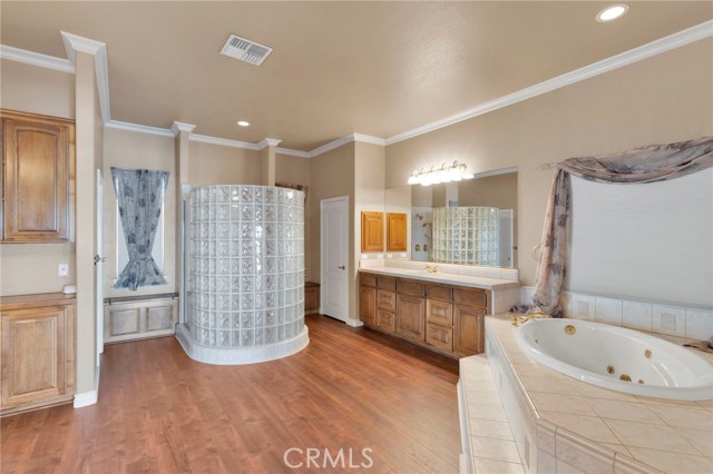 Beautiful home in an amazing area of Apple Valley. 6 CAR GARAGE PLUS RV GARAGE!! Gorgeous entrance with oversized doors and windows. 3 bedrooms with their own bathroom plus a guest bath. Owners suite is HUGE with a fireplace to enjoy those cozy evenings. Bathroom is very elegant with large soaking tub, oversized shower, Double Vanities, Separate Water Closet, Big Walk In Closet. Large Kitchen and Living Room includes a Walk-in Pantry, Built-ins and Fireplace in the Living Room. Formal Dining room that can also be used as an office. Separate Laundry room with door to an oversized 2 car garage. Gorgeous view of the mountains and City Lights. Back yard has a block wall, roses, and a large back patio.