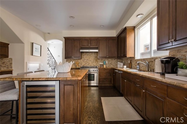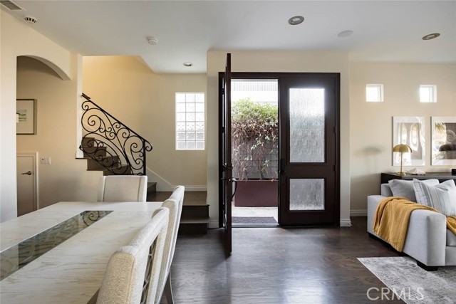 Elegance, charm and privacy, yet only steps away from the magic of Downtown. The secluded, flagstone patio invites you to stay awhile, but the open French doors welcome you inside. So many delightful choices! The dark oak hardwood flooring and the large living room mirror bringing sunshine into the living room are hard to resist. You walk in, past the beautiful glass front door and into the sumptuous family kitchen. 6 burner Thermador range. In fact, all Thermador appliances. And plenty of room for a large kitchen table. So much space to cook and talk and be with family and friends. What a delight. And to top it all off, a welcoming fireplace with a beautiful mahogany wall surround. So unexpected and so elegant. And here is another patio, perfect for dinner outside. You walk to the second floor and find a large, airy family room with another fireplace and mahogany wall surround. How lovely! Down the hall the romantic bedroom suite beckons you in. French doors open to the Juliet balcony, the perfect spot for your morning coffee or evening glass of wine. And what else? A large, roomy walk-in closet and the perfect bathroom with enough room for two to get ready for the day. You walk out of the main bedroom, down the hall, past the family room to a suite of 2 bedrooms with a Jack and Jill bathroom in between. Just right. Now to the third floor. What! The perfect work from home office! It even has a built-in office cabinet with file drawers and a small refrigerator. And another balcony from where you can see Main St and almost to the beach. Plus, it also can be that perfect 4th bedroom. You can't believe your luck. This furnished house has it all, everything you want...and more!!