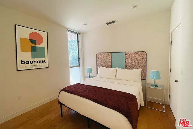 Instantly recognizable for its iconic blush facade, The Donna is a striking architectural gem in the heart of Los Feliz. Designed by acclaimed architecture studio YU2E, this award-winning project (AIA, ArchDaily, Dezeen, Detail, etc.) blends sculptural form with functional elegance, offering a new vision of modern residential living in Los Angeles' east side. UNIT 5: A stunning 2 bedroom/2 bathroom residence, includes oversized windows, seamless indoor outdoor transitions, landmark views of the Griffith Park Observatory, a large patio, maple wood flooring, high ceilings, luxury Samsung appliances, floor to ceiling kitchen cabinets, a walk-in closet, in-unit laundry, and a covered parking spot. With cozy bedrooms and an expansive living space, the layout is designed for both comfort and clarity. Enjoy quiet mornings on your own patio and evenings hosting under dramatic sunsets. The building features two garden communal spaces, a digital doorman, secure package delivery, and assigned parking, all within a private access site. Blocks from exceptional restaurants and shops on Hillhurst & Vermont, hiking trails, and all that Los Feliz has to offer, this is a unique opportunity to live in color in one of LA's finest neighborhoods, walking distance to Maru Coffee, Los Feliz Theater, Alltime, and many other ample offerings on Hillhurst and Vermont. A perfect combination of quality, style, and functionality that's rare to find and nearly impossible to duplicate. Unit is vacant, images with furniture are virtually staged.