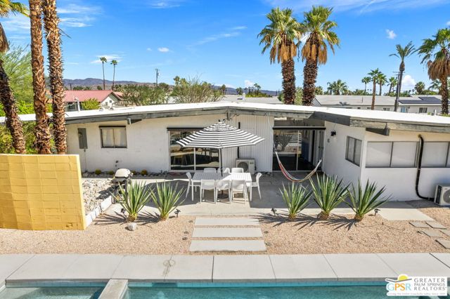 Welcome to The Limoncello House -- a mid-century modern retreat blending timeless Palm Springs style with today's comfort. Built in 1959 by Ranch Club Construction Co., this 2-bed, 2-bath gem captures the indoor-outdoor lifestyle the desert is famous for. Walls of glass frame mountain views and open to a sunny patio with a PebbleTec pool, spa, hammock, outdoor dining, and BBQ. The open living area features clean lines, vaulted ceilings, and cheerful dcor that celebrates the home's mid-century heritage while keeping things bright and modern. Each bedroom offers privacy and ensuite access, ideal for couples or snowbirds seeking a stylish, low-maintenance escape. The layout emphasizes relaxation and easy entertaining, from morning coffee by the pool to evening sunsets over Mt. San Jacinto. Available fully furnished for 30-day+ seasonal stays (Jan - Apr 2026). Close to Uptown Design District shops, restaurants, and golf. Experience authentic Palm Springs living in this chic desert hideaway designed for comfort, sunshine, and style.