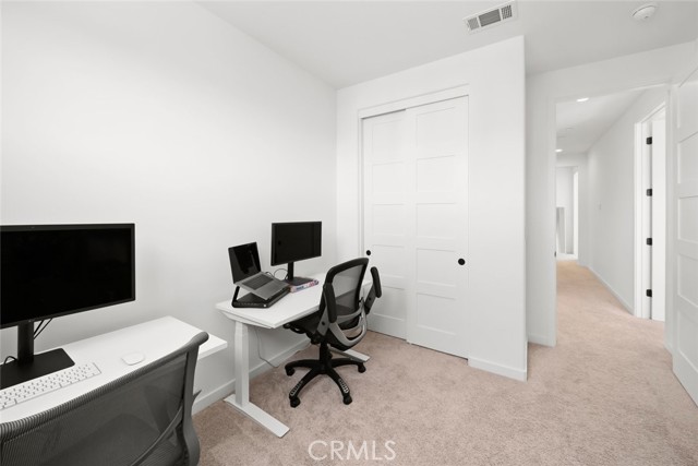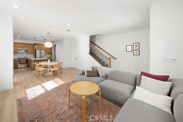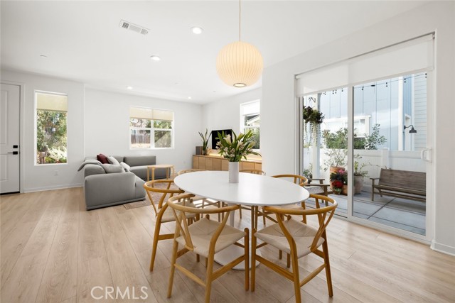 Nestled along a tranquil wooded creek, this beautifully upgraded townhome offers modern comfort and natural serenity. Built in 2021, the residence showcases clean contemporary design, an all-electric energy-efficient layout with owned solar, and a thoughtful connection between indoor and outdoor living. The main level features an open concept living area filled with natural light and framed by peaceful creekside views. Luxury vinyl plank flooring, customized lighting, and picture windows create a refined atmosphere throughout. The kitchen is stylish and functional, complete with quartz countertops, subway tile backsplash, wood-grain shaker cabinetry, and premium GE stainless steel appliances, including a Café French door refrigerator and induction range. An island with pendant lighting and counter seating adds convenience and charm, while the adjacent dining area opens to a covered and enclosed patio, ideal for morning coffee or evening relaxation. Upstairs, the spacious primary suite enjoys soft natural light, a walk-in closet, and a beautifully finished en suite bath with a double-sink vanity, frameless glass shower, and black plumbing fixtures. Two additional bedrooms provide flexibility for guests or a home office, complemented by a full hallway bath and a dedicated laundry room with tile flooring and built-in cabinetry. Additional highlights include 9-foot ceilings, 8-foot interior doors with black hardware, an EV-ready two-car garage, under-stair storage, and forced air heating and cooling. With its modern efficiency, owned solar system, and peaceful setting along the creek, this home offers style, sustainability, and San Luis Obispo’s signature natural beauty.