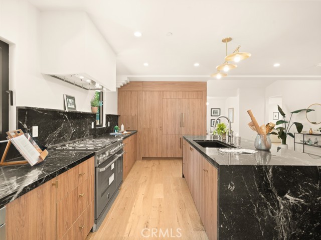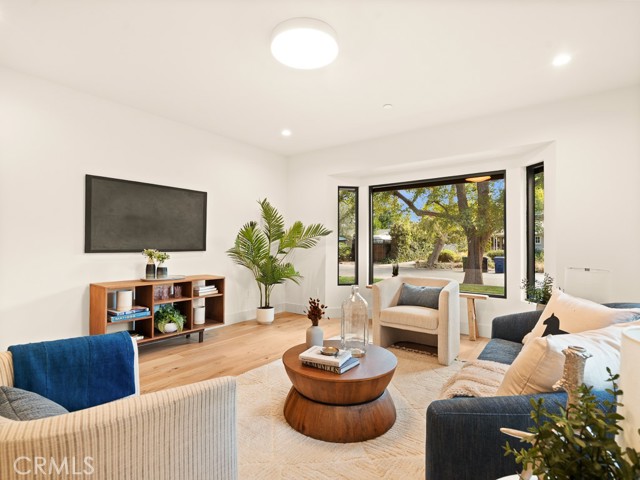 Modern Valley Village Showplace – Fully Renovated & Move-In Ready Located on a quiet, tree-lined street south of Magnolia Blvd, this 5-bedroom, 4-bathroom home offers 3,450 sq ft of beautifully reimagined living space across two levels. Fully renovated from top to bottom—including all major systems, new roof, windows, plumbing, electrical, and HVAC—this home is the definition of turn-key. The stunning foyer welcomes you with vaulted ceilings and custom cabinetry, offering a dramatic sense of scale and smart storage. Downstairs features two bedrooms, one with its own en suite—perfect for guests or multi-gen living. The heart of the home is the chef’s kitchen, featuring a panel-ready appliance suite, natural stone countertops, and an oversized island ideal for entertaining. Just off the kitchen, a laundry room with a separate entrance and oversized sink makes for a perfect pet-washing station or mudroom. Wide-open living and dining areas open to the backyard through multiple access points, creating a seamless indoor-outdoor flow. Outside, enjoy a fire pit, large patio, and space to unwind or entertain. Upstairs, the primary suite offers a massive walk-in closet and a spa-style bathroom with dual shower heads, standalone soaking tub, and dual-sink vanity. Two more upstairs bedrooms and a flexible lounge space—ideal for reading, homework, or a small office—round out the second level. Each of the home’s four full bathrooms is uniquely designed while staying true to the overall aesthetic, adding a custom feel throughout. A 600 sq ft detached garage presents a great opportunity for ADU conversion (buyer to verify). This home offers scale, quality, and thoughtful design in one of Valley Village’s most desirable neighborhoods—just minutes from studios, parks, and top-rated schools.