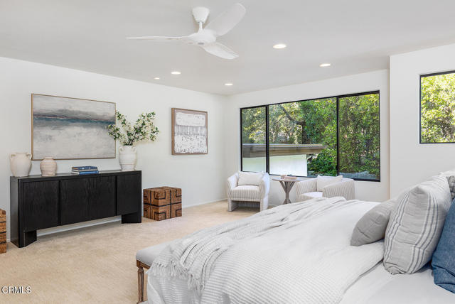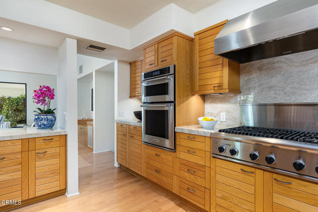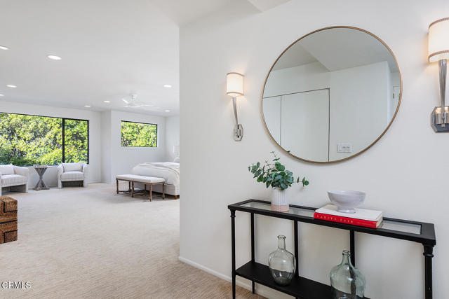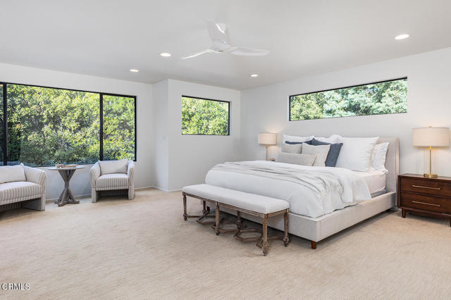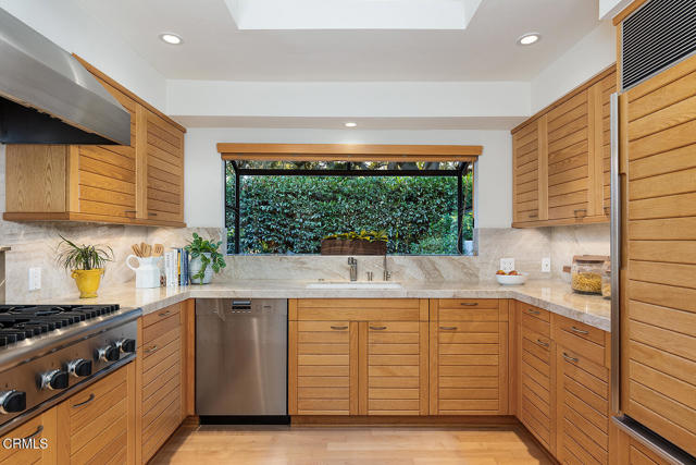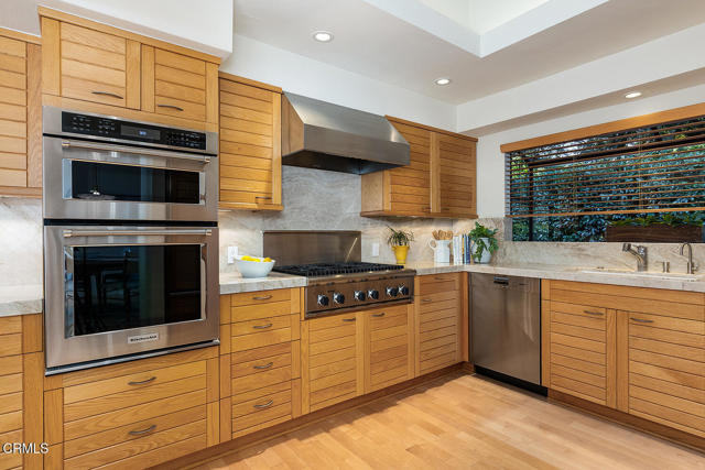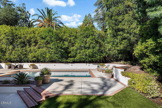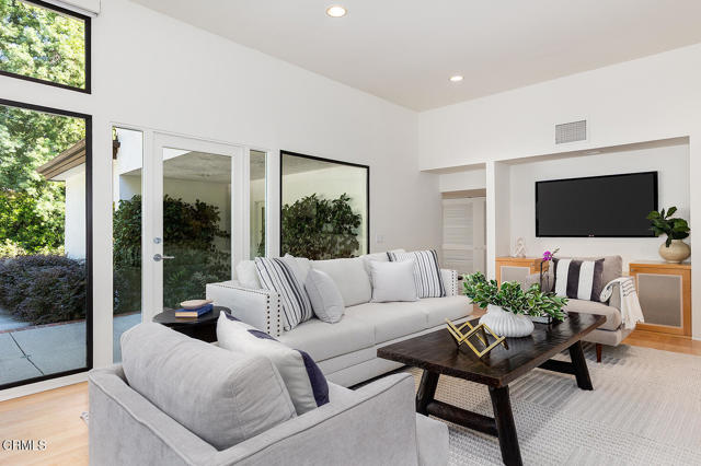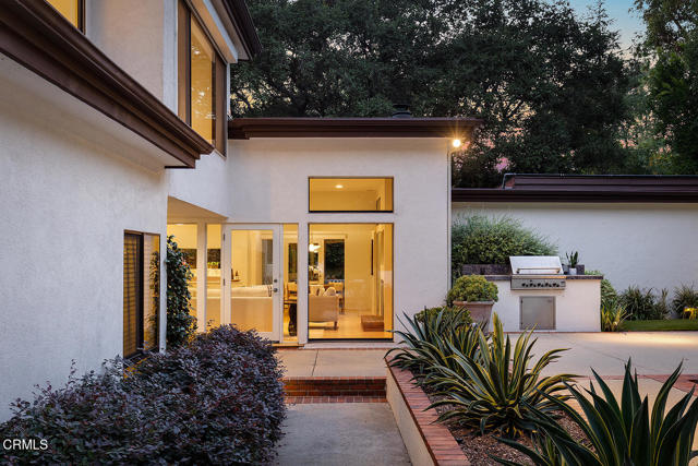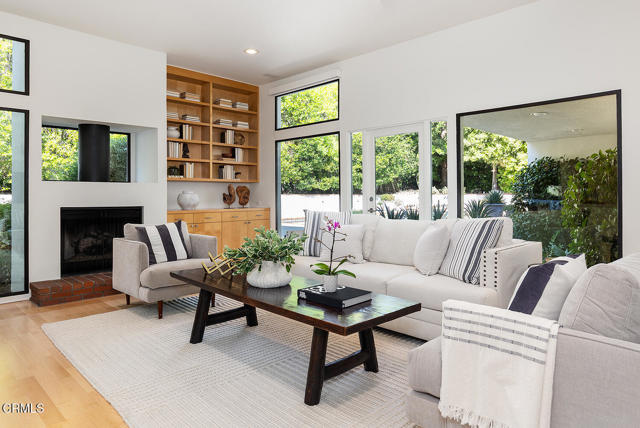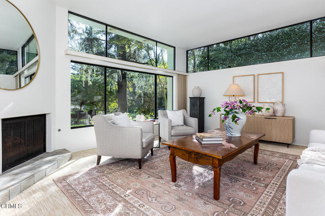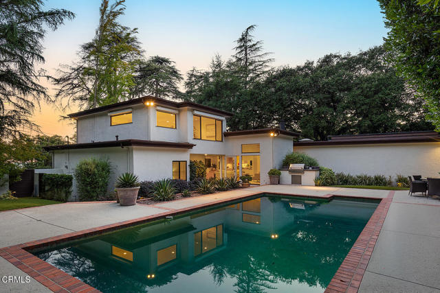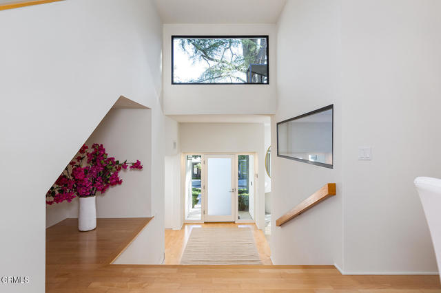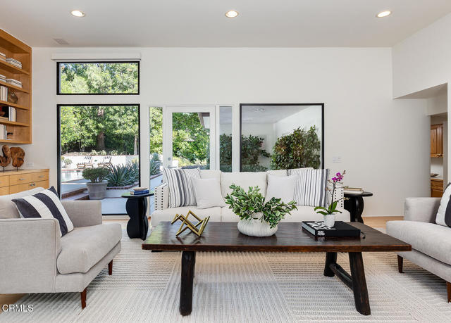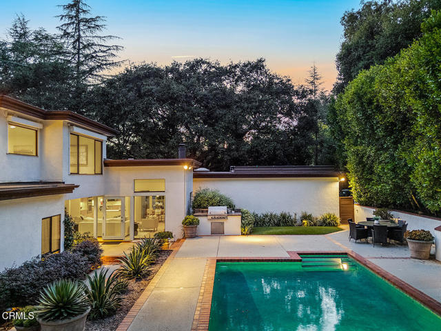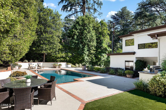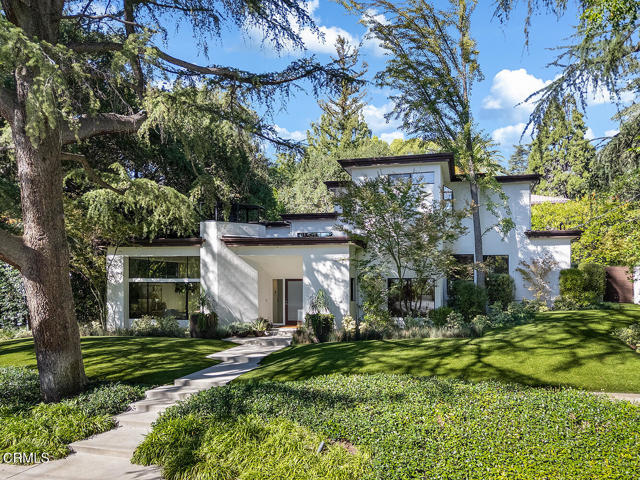 Framed by majestic deodar trees, this sculptural contemporary home blends architecturalsophistication and warm California modern living. Its striking frontage and manicured landscape offer instant curb appeal, while expansive glass walls fill the interior w/ natural light, blurring the line between indoors and out. Thoughtfully designed to frame tranquil garden views, each space embraces its lush surroundings, creating a serene, resort-like atmosphere where elegance and nature coexist in harmony. Located in one of the area's most desirable neighborhoods and within the award-winning La Canada Unified School District, this move-in ready home combines comfort, functionality, and design excellence. A flowing floor plan unites open gathering areas with private retreats, creating a seamless blend of livability and sophistication throughout. Four spacious bedrooms plus a flexible office with closet can serve as a fifth. Lauzon maple flooring, bespoke cabinetry, and European hardware highlight refined craftsmanship at every turn. One bedroom includes a built-in desk and custom Murphy bed with a quality mattress, offering dual convenience for guests or work-from-home living. Every room feels light-filled & thoughtfully connected, emphasizing calm, balance, and comfort through intentional design choices. The living and family rooms each feature gas fireplaces with recirculating systems and custom logs, adding warmth and ambiance while maintaining efficiency. The chef's kitchen serves as both a design statement and a culinary hub, featuring custom cabinetry, quartzite counters, top-tier appliances, and a fireclay sink with integrated filtration.Smart features include Nest thermostats, Kasa lighting, WiFi security, and a Rainbird irrigation system for effortless modern convenience. Outdoors, the sparkling solar-heated pool offers year-round enjoyment surrounded by sustainable turf, mature greenery, and complete landscape lighting. Multiple patios extend living spaces for entertaining, relaxation, & connection to nature in a peaceful, private environment. An attached garage, a rare feature in Southern California, provides direct access, generous custom storage, built-in electrical access, & a remote-operated door system for convenience & ease of everyday living.Perfectly positioned near shops, dining, hiking trails, & major freeways, this refined California Modern retreat offers tranquility, sophistication, & timeless appeal. Don't miss seeing this spectacular home!