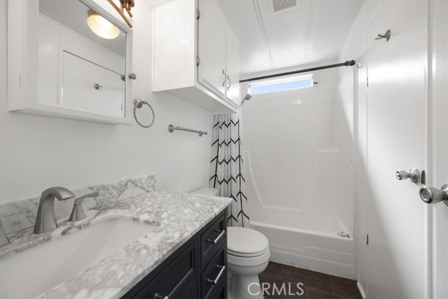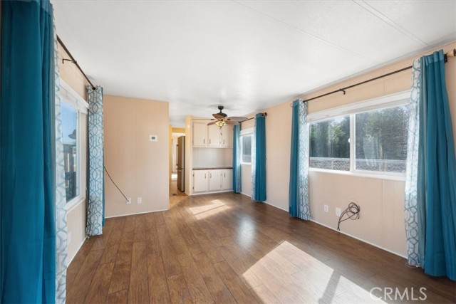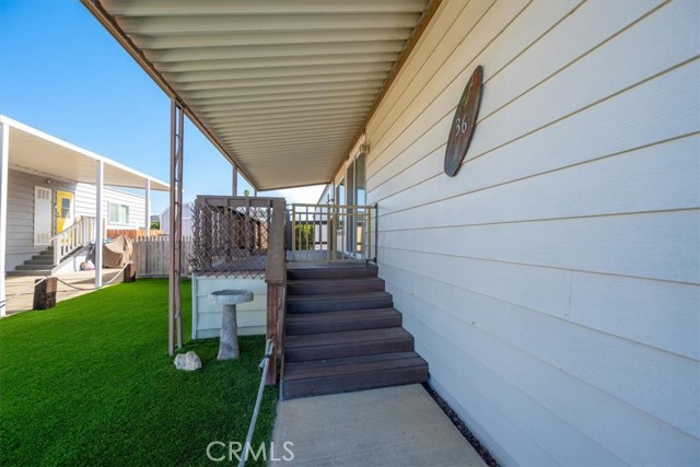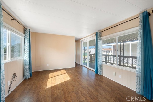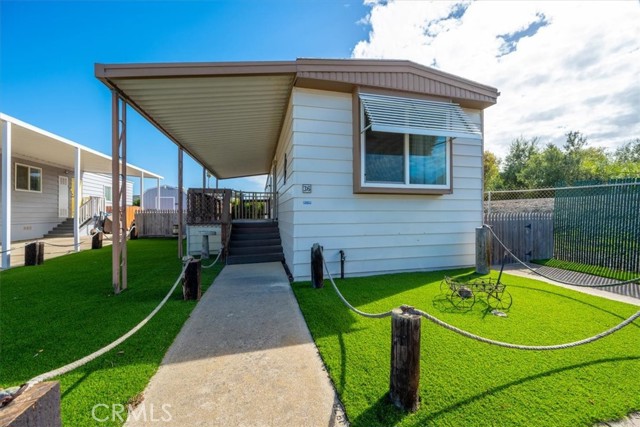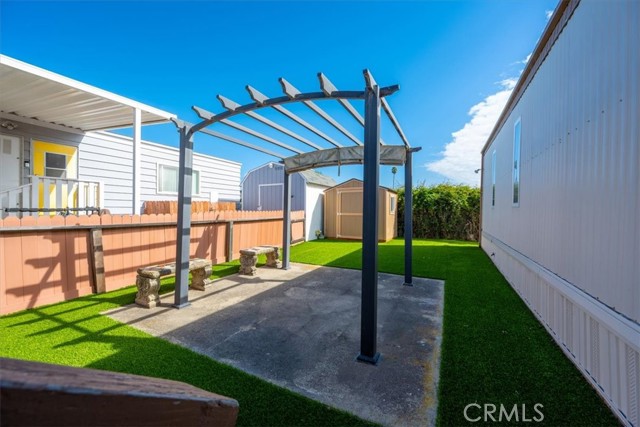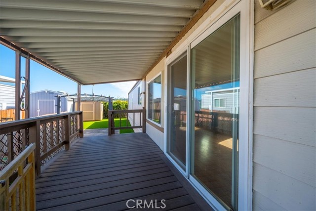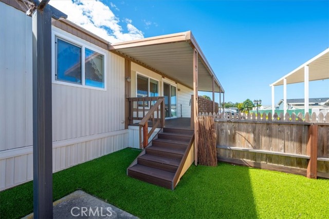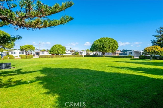 A 2 bedroom, 2 bath mobile home on owner own 1/70 share of the park, at the back of the park for ultimate privacy! This single wide has lot of yard space equip with artificial grass for outdoor entertaining and relaxing. The side yard offering a large gazebo for shade and hanging out with extra built in seating next to the gazebo. The backyard also equip with a storage shed in great shape. Lush greenery grows behind the home giving extra privacy. Upon walking through the front door you are greeted by a large open living room with a lot of natural lighting. The kitchen has lots of counter top space for cooking with a large sink. Great shape vinyl flooring runs throughout the home. Dual pane windows throughout keep it well insulated. The home has 2 Different guest suites, on each side of the house offering privacy for sleeping purposes, or an extra room for storage/office space. You'll also find a completely remodeled full bath with a tub and tiled stand up shower. Along with it's own laundry room with a stackable washer and dryer. The park offers a pool, gym and clubhouse and a lot of wide open yard space for lunches and relaxing. Just a short walk to the beach. You can't beat the location and price. Also comes with 2 designated parking spaces up against the the chainlink fence! Call your favorite realtor today!