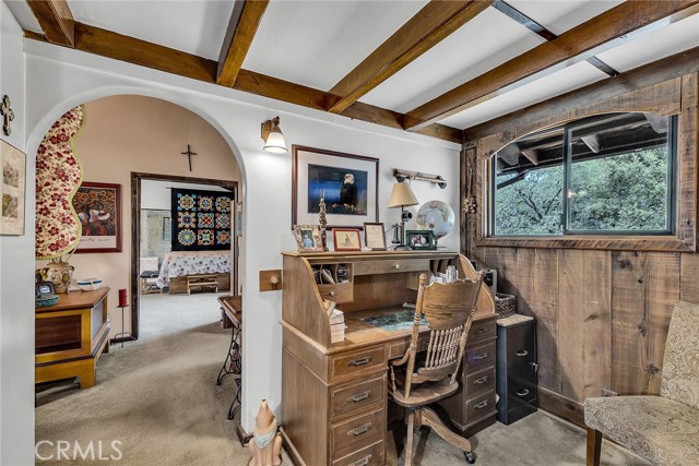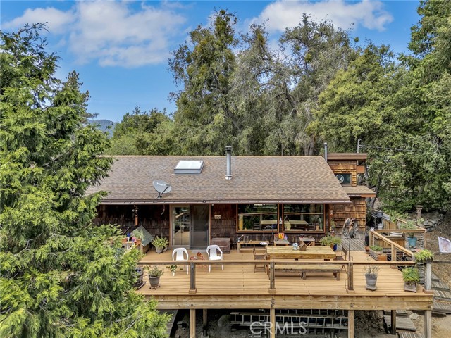 Three homes on three private acres, just five scenic miles north of Idyllwild. Zoned W-2-40, this versatile property offers a rare combination of residential comfort, income potential, and flexible rural use. The setting is quiet and private, surrounded by tall pines and mountain views, with room for horses, gardens, and creative projects. The main residence features vaulted wood-beam ceilings, open living and dining areas, and three bedrooms including two ensuite units. A large quilting room offers abundant light and storage, easily adaptable as an art studio, office, or additional bedroom. The primary suite includes a walk-in closet and a spacious bath with a custom oval window. The lower ensuite bedroom is large enough for a sitting area, gym, or guest suite. Outdoor living spaces include a screened and covered deck for morning coffee and a wraparound deck ideal for sunset views. A 500-square-foot detached workshop provides ample space for tools or hobbies. Above the two-car garage, a bright one-bedroom apartment includes vaulted ceilings, full kitchen, and laundry. The two-bedroom Garden House offers its own fenced yard and forest views. Both guest units are currently rented, generating steady income while the main home remains owner-occupied. The property, known as Eagles Nest Ranch, captures the true mountain lifestyle—peaceful, private, and practical. Whether you envision a family compound, small equestrian retreat, or creative live-work environment, this three-acre parcel provides rare versatility and endless potential under W-2 zoning. Trails, wildlife, and open space surround you, just minutes from the heart of Idyllwild.