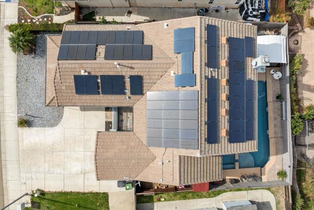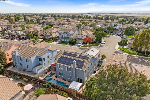 This beautifully updated 5-bed, 4-bath home with 3,198 sq ft of living space is located in one of Tracy’s most desirable neighborhoods. Our spacious 2-story home offers vaulted ceilings, fresh interior paint, and a flexible layout ideal for large families or multigenerational living. 1 bed & full bath downstairs, ideal for guests or a home gym. Upstairs features a primary bedroom with sitting area, a huge bathroom with a soaking tub & walk-in closet; a jr. suite with full bath; 2 additional bedrooms & another full bath; a versatile loft that’s perfect for additional living area, media room, or home office. The open-concept design offers abundant natural light. The well-equipped kitchen offers a chef's dream 6-burner stove, an island, walk in pantry and ample cabinets & counter space. It seamlessly flows into the living and dining areas. Step outside to your private backyard retreat with a sparkling pool & spa with water falls - a perfect space to relax or entertain. There is a 2-car AND a single car attached garage. Solar. Located near parks, schools, and commuter routes. This move-in-ready home offers the perfect blend of comfort, style, and functionality.