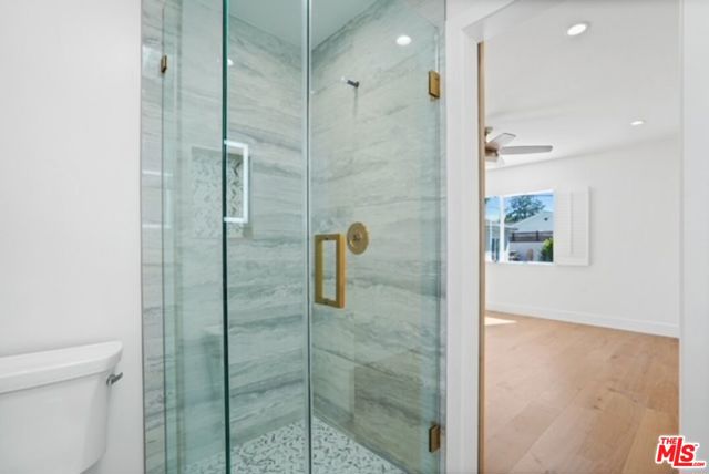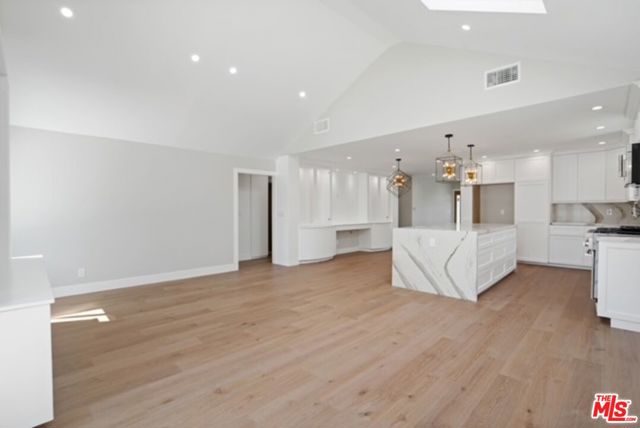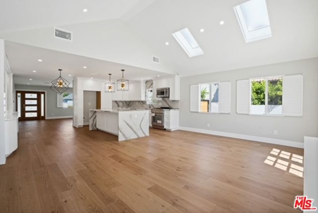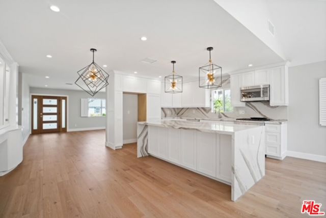 Welcome to this beautifully renovated 4-bedroom, 3-bathroom residence, where timeless elegance meets modern comfort in the heart of the coveted "Library Square" neighborhood of Sherman Oaks. Set on a beautiful tree-lined street this home is bathed in natural light and freshly painted throughout, creating a bright and inviting atmosphere. As you enter, you're welcomed by a living room that seamlessly flows into a spacious dining area perfect for hosting family and friends. The chef's kitchen is a true showstopper, boasting classic shaker cabinetry, a spacious center island with breakfast bar, soft-close drawers, ample counter space, pantry and sleek stainless-steel appliances. The kitchen and dining area open into a family room with vaulted ceilings and French doors that lead to a lush, gated backyard ideal for California indoor-outdoor living. The primary suite offers a serene retreat with a stylishly updated en-suite bathroom; there is a second ensuite bedroom and two additional bedrooms that share a beautifully designed bathroom with a tub and double vanity. Additional highlights include: Central air and heat, Recessed lighting, modern fixtures, plantation shutters, Wood-style laminate flooring throughout, and washer/dryer in the private garage. The gated front yard and backyard are a gardener's delight, adorned with vibrant blooms. Sustainable landscaping enhances both beauty and eco-friendliness. A private, detached 2-car garage (No ADU). Enjoy the unbeatable location just moments from Trader Joe's, Westfield Fashion Square Mall, top-rated schools, and convenient freeway access. With its charming curb appeal, lighted front porch, and thoughtfully curated interior, this home is a true gem ready to welcome you in.
