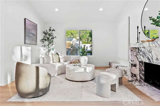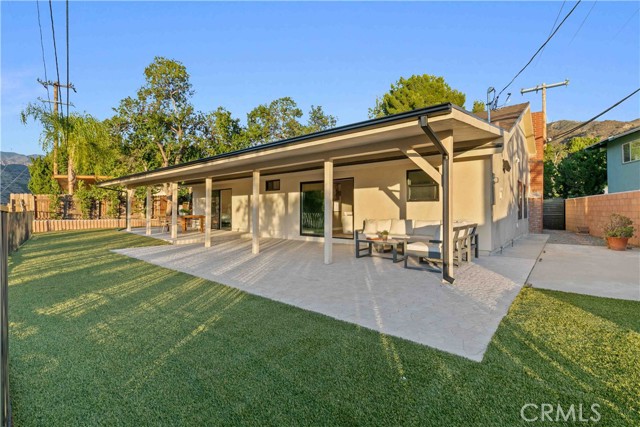 Welcome to this stunning fully remodeled 3-bedroom, 2-bathroom home nestled in the highly desirable Alpine Village neighborhood of Tujunga. Step inside to discover an inviting open-concept floor plan with high ceilings that fill the living area with natural light. The modern kitchen flows seamlessly into the spacious living and dining areas—perfect for both everyday living and entertaining guests. The primary suite offers a walk-in closet and a beautifully updated private bath, creating a relaxing retreat. Enjoy picturesque mountain views from your oversized patio and a large backyard, ideal for outdoor dining, gatherings, or simply unwinding in the peaceful surroundings.Additional upgrades include new windows, modern finishes throughout, and attention to detail at every turn. This home perfectly combines comfort, style, and a prime Tujunga location known for its tranquility and charm.