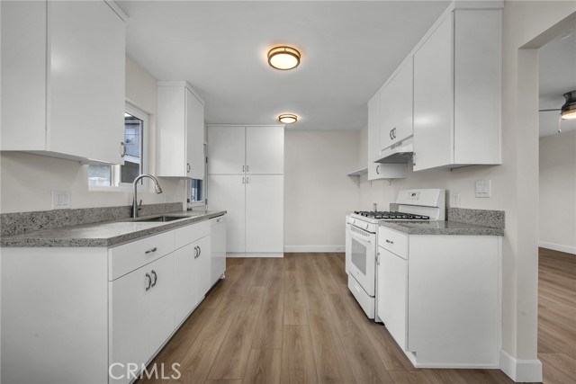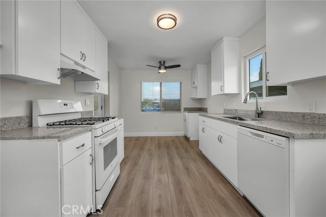 Step into this beautifully remodeled two-bedroom, one-bath home, perfectly situated on a peaceful cul-de-sac in the heart of Lomita. This inviting single-level residence combines modern comfort with thoughtful design and stylish finishes throughout. The home features stunning new vinyl flooring and brand-new dual-pane windows that fill each room with natural light. A new heating system ensures year-round comfort, while the completely remodeled bathroom adds a fresh, contemporary touch. The large, beautifully designed eat-in kitchen is a true highlight—featuring brand-new cabinetry, sleek quartz countertops, modern appliances, and ample storage and workspace. Whether you're preparing a casual meal or entertaining friends, this kitchen offers both functionality and charm. An open and flowing floor plan connects the living areas seamlessly, with warm wood tones and ceiling fans enhancing the welcoming ambiance. Every detail has been thoughtfully updated, including all-new blinds and finishes throughout. Enjoy the convenience of your own private rear patio—perfect for morning coffee, dining al fresco, or simply relaxing outdoors. The home also includes a private one-car garage and additional driveway parking. Centrally located near local shops, parks, schools, and just a short drive to the beach, this charming Lomita residence offers the ideal blend of comfort, style, and convenience.