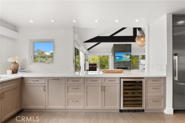 Nestled within a serene, private cul-de-sac in one of Laguna Beach’s most coveted neighborhoods, this exquisite 4-bedroom, 3.5-bathroom residence offers sweeping ocean views and the perfect blend of timeless design and modern luxury. The interiors are graced with custom lighting from Van Egmond, a renowned Dutch designer celebrated for sculptural artistry and craftsmanship. Recently replaced Anderson windows and doors flood the home with natural light, while $50,000 in electric blinds (all under transferable warranty) provide convenience and comfort throughout. The kitchen has been thoughtfully updated with new counters, stove, faucet, and sink, complemented by a premium Tynet 13-stage water filtration system. Additional upgrades include a new water heater, refinished upstairs floors, and other modern enhancements that elevate daily living. The primary suite is a serene retreat featuring a steam room and breathtaking ocean vistas. Modern comforts include a Vivint security system (fully paid, optional monitoring) and meticulously maintained landscaping. Outdoors, the property is a private sanctuary with 18 fruit trees, a Jacuzzi, and a custom art installation, all framed by a large, extended gated driveway. Every detail of 766 Pelican Drive harmonizes elegance, innovation, and coastal living for a truly one-of-a-kind Laguna Beach experience.